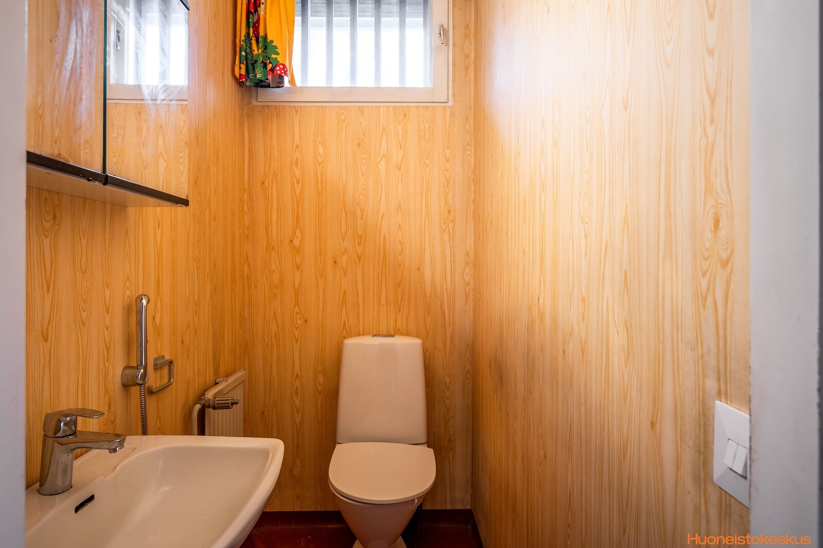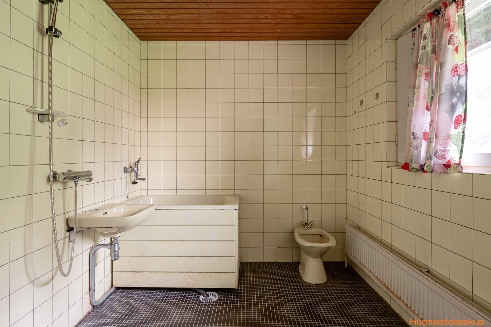 | Kylpyhuoneen kuvaus | WC-istuin ja suihku, seinät (kaakeli), lattiat (laatta) |