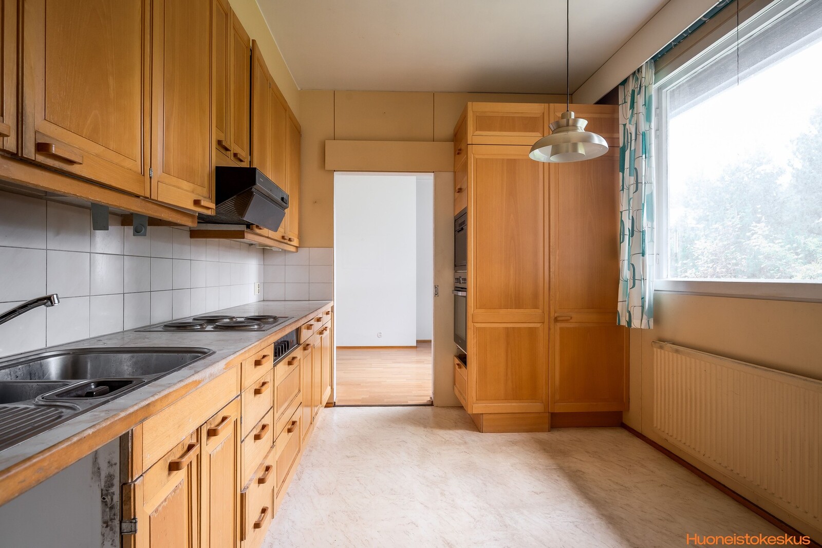 | Keittiön kuvaus | Liesi (sähköliesi), seinät (tapetti ja maali), lattiat (parketti), liesi ja jääkaappipakastin |