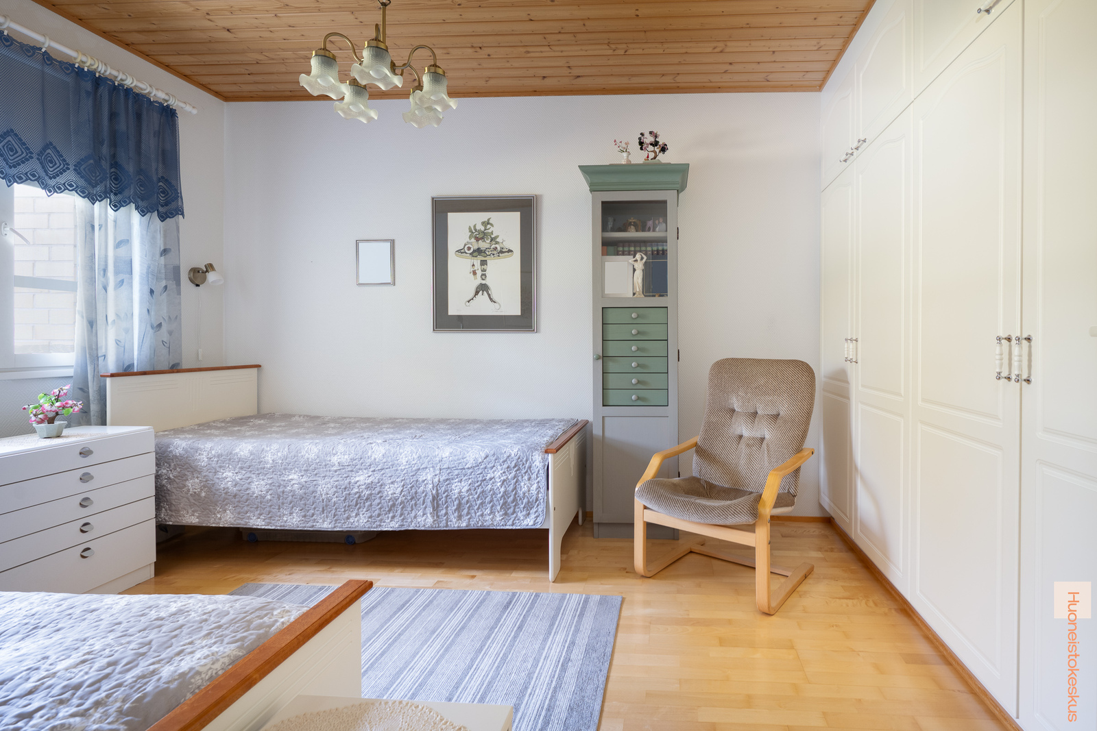 | Makuuhuoneen kuvaus | Lukumäärä: 1, seinät (tapetti), lattiat (laminaatti) |