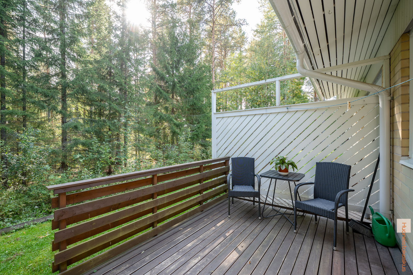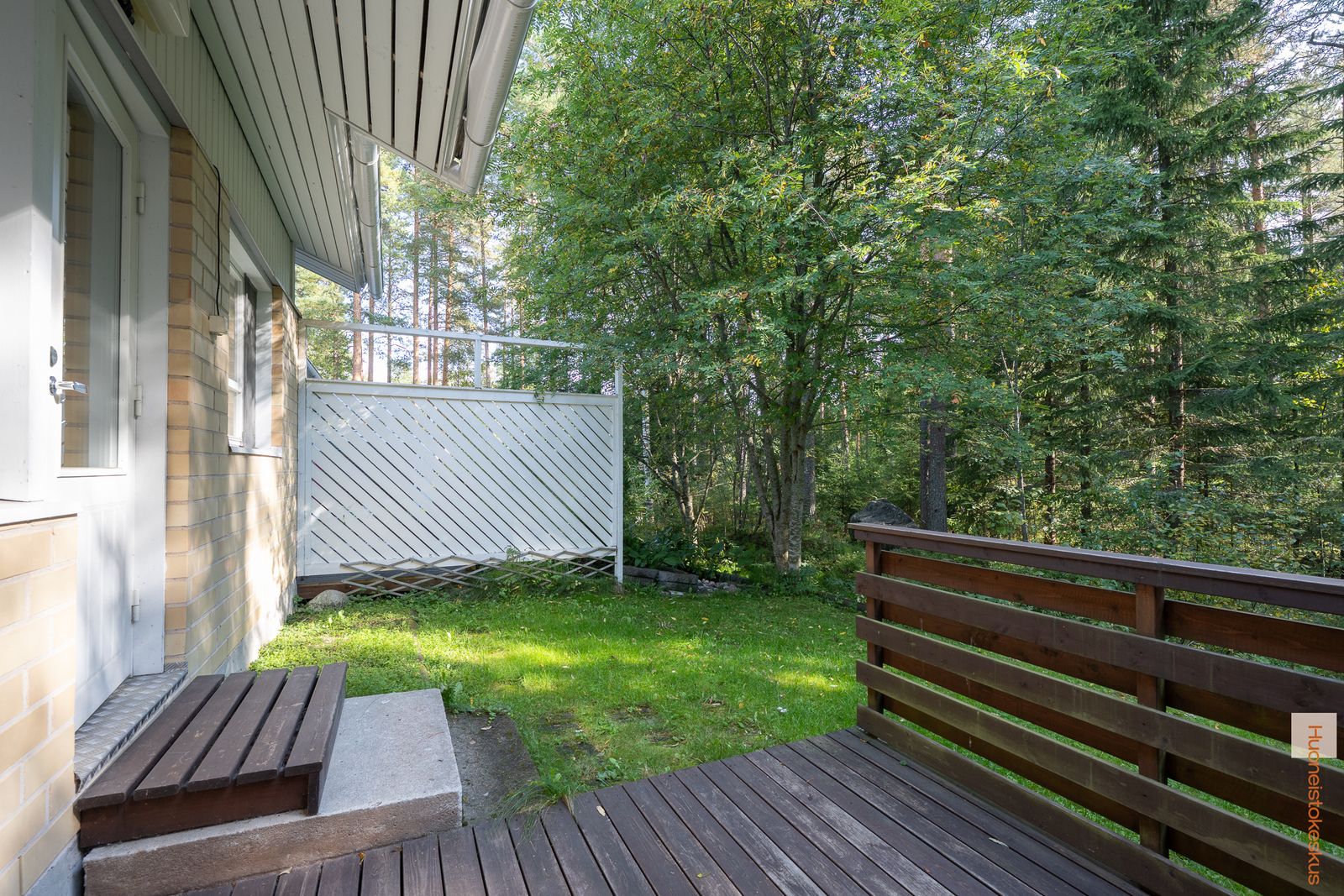 Asunnon takapihan terassilta avautuu rauhoittava metsänäkymä.