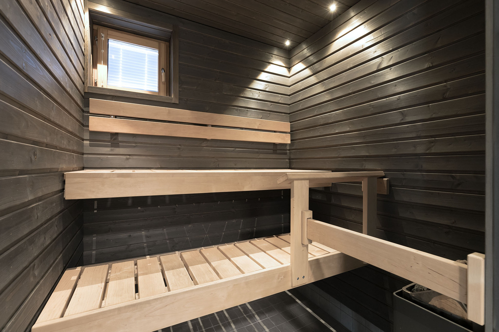 | Saunan kuvaus | Seinät (puu), lattiat (laatta), Sähkökiuas |