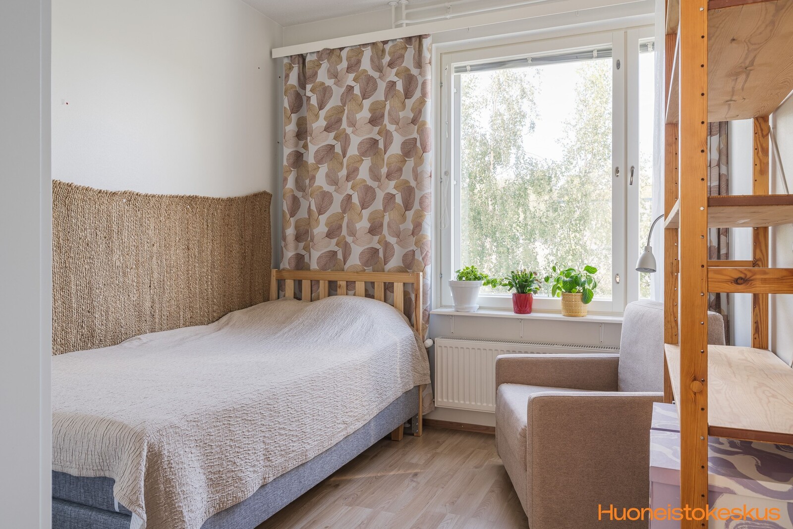 | Makuuhuoneen kuvaus | Lukumäärä: 3, seinät (maali), lattiat (laminaatti), Kaikissa makuuhuoneissa kiinteät vaatekaapit. |