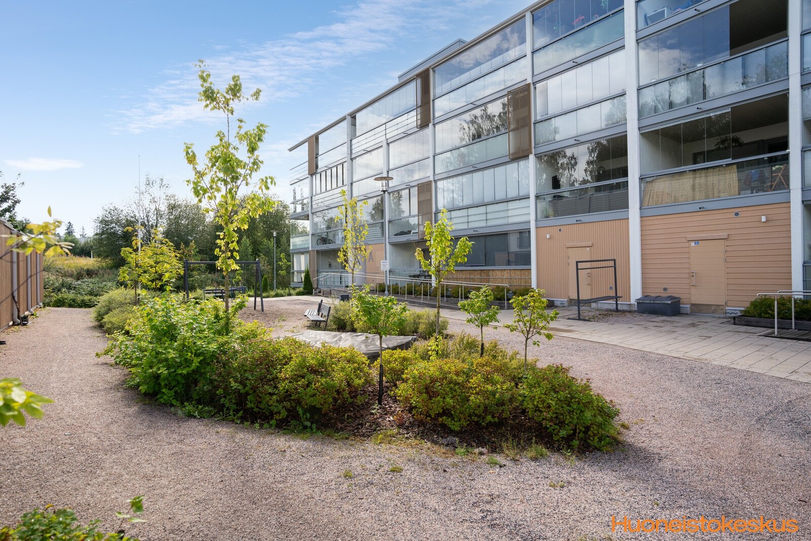 | Muuta taloyhtiöstä | Pesutupa, urheiluvälinevarasto, mankeli, kuivaushuone ja lastenvaunuvarasto, huoneistokohtaiset varastot, sauna |