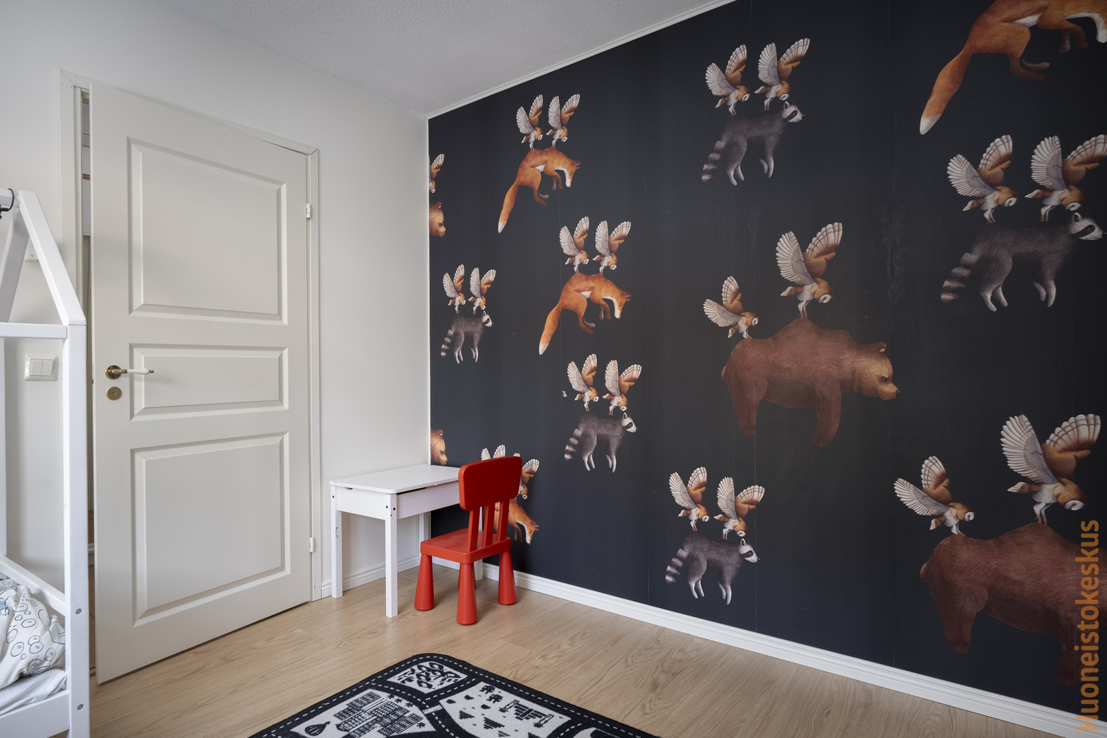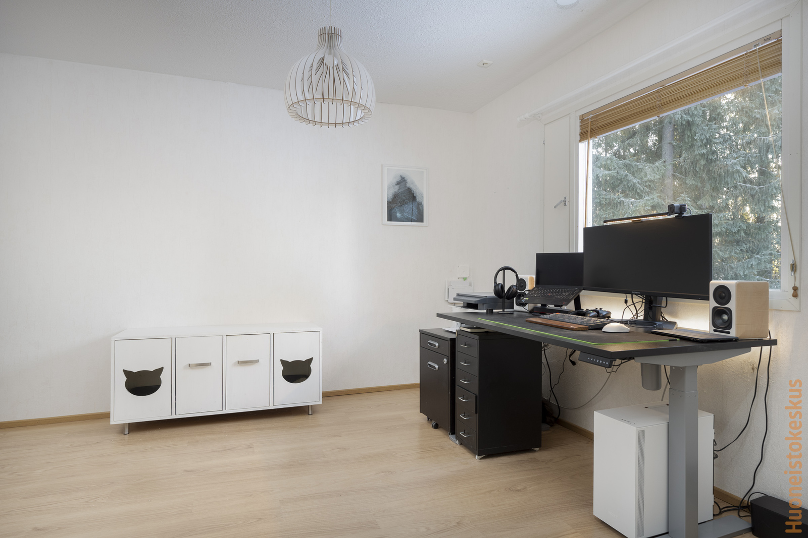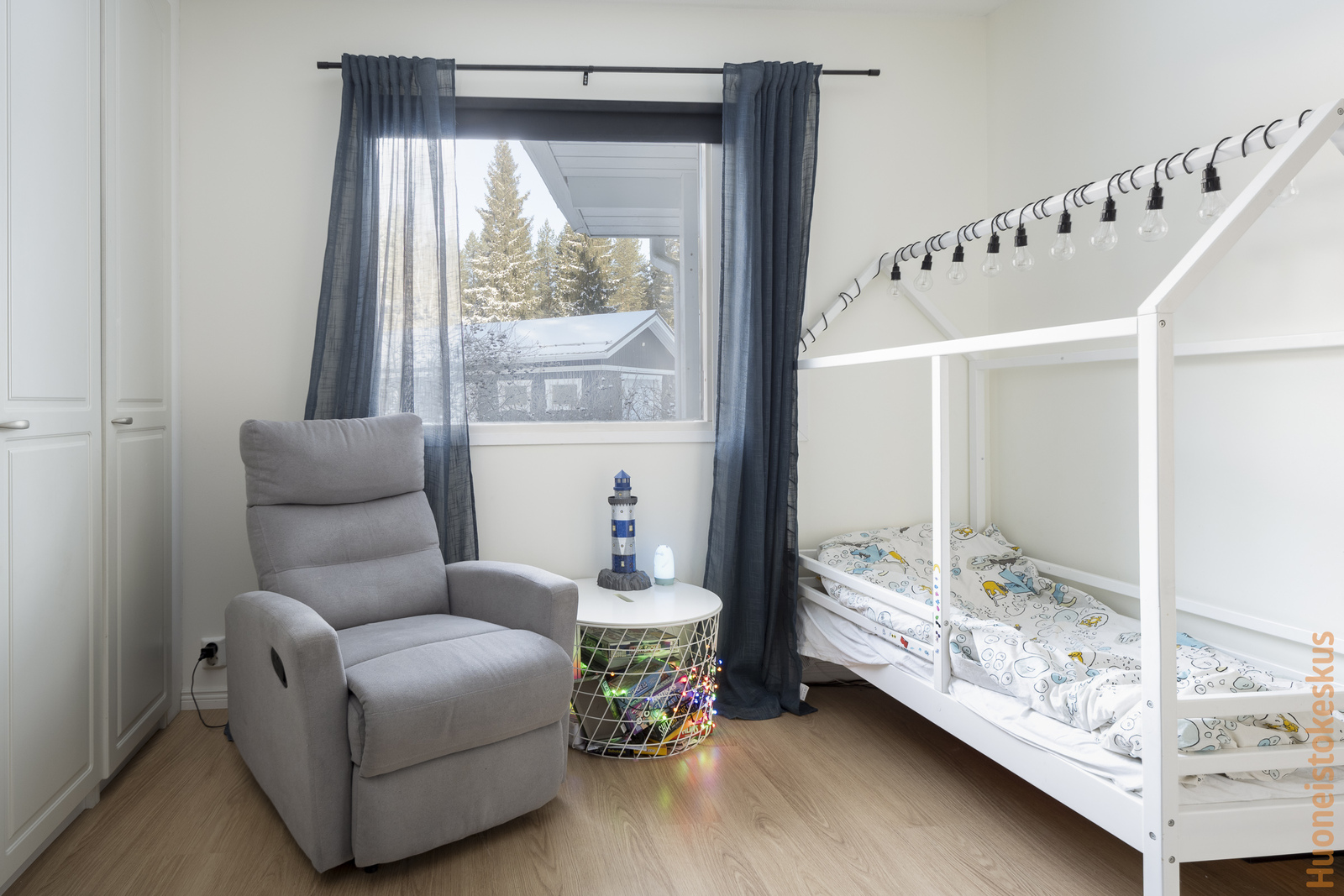 | Makuuhuoneen kuvaus | Lukumäärä: 3, seinät (tapetti ja maali), lattiat (laminaatti) |