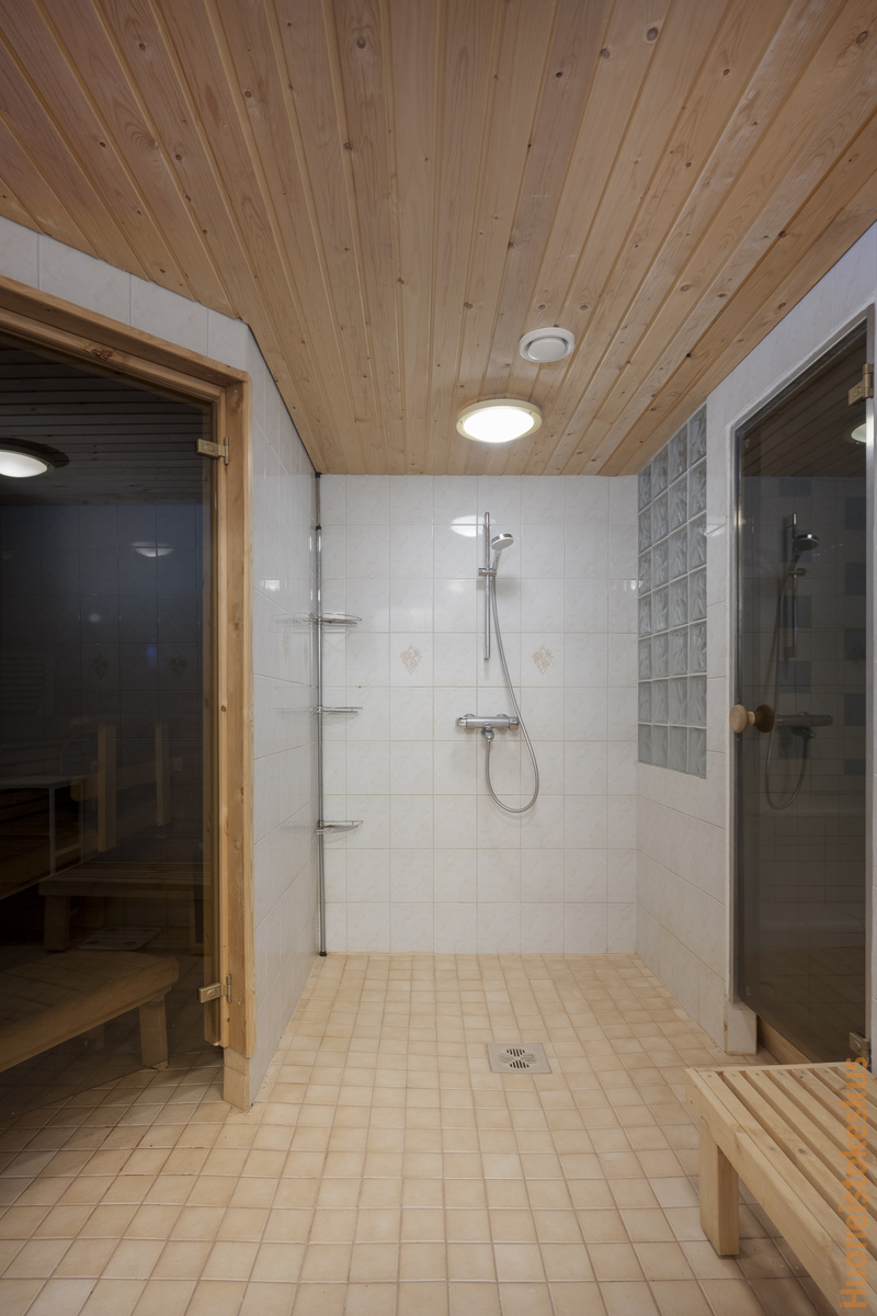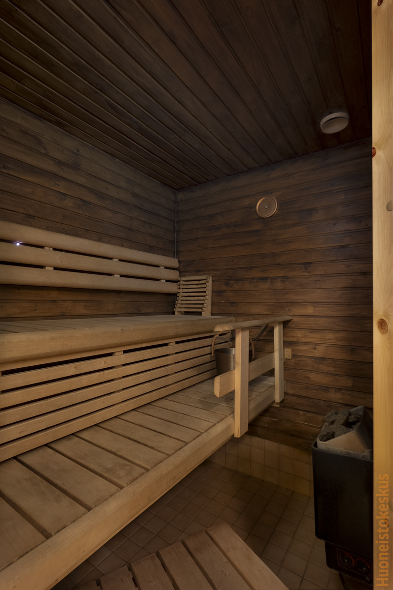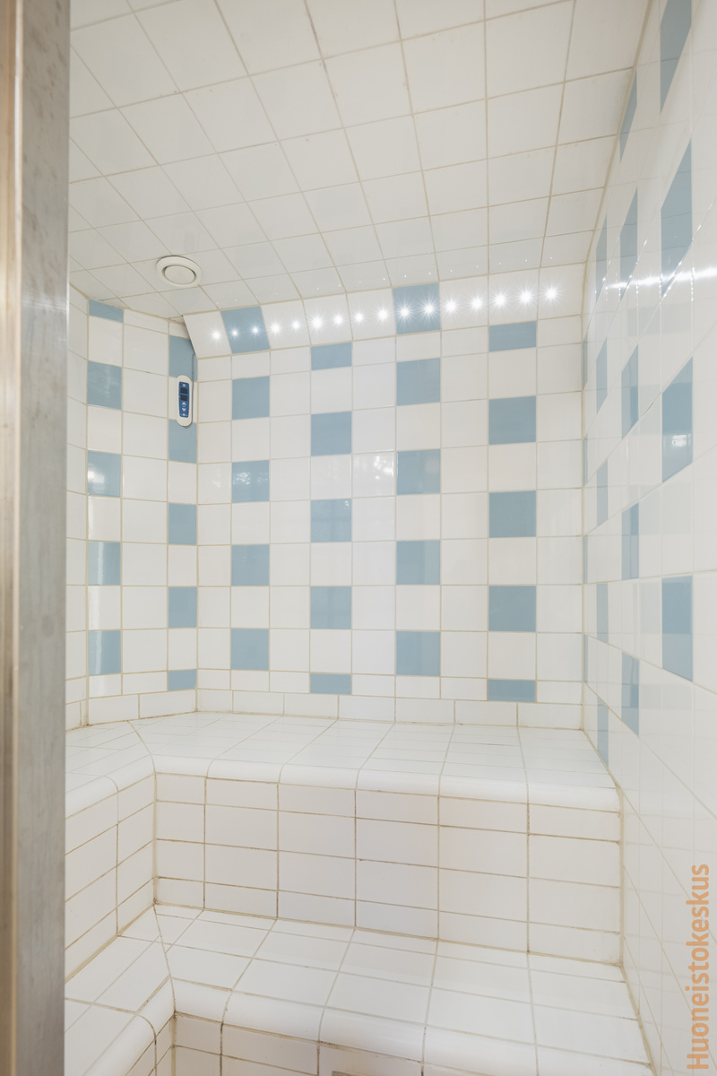 | Saunan kuvaus | Seinät (kaakeli ja paneeli), lattiat (laatta), Sähkökiuas, Kaksi saunaa, sauna sähkökiukaalla ja höyrysauna. |