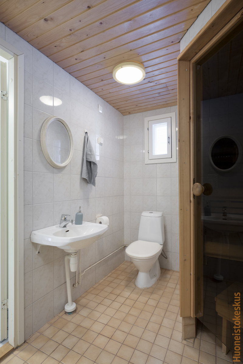 | WC-tilojen kuvaus | Lukumäärä: 1, Lattiakaivo, bidee-suihku, lattialämmitys, peili, pesuallas, allaskaappi ja wc-istuin, seinät (Kaakeli), lattiat (Laatta) |