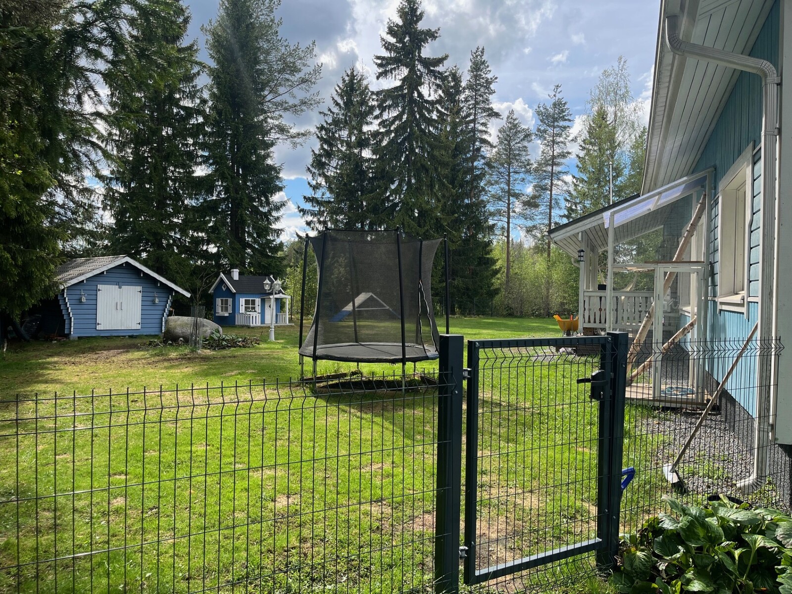 Tilava tontti 1656 m2 on aidattu, joten se on turvallinen myös lemmikeille. Pihapiirissä on erillinen autokatos/varasto sekä puuliiteri ja viehättävä leikkimökki.