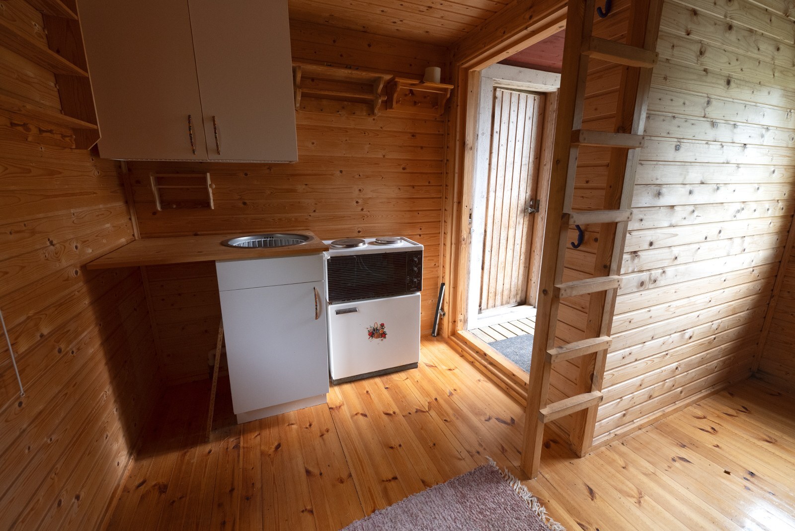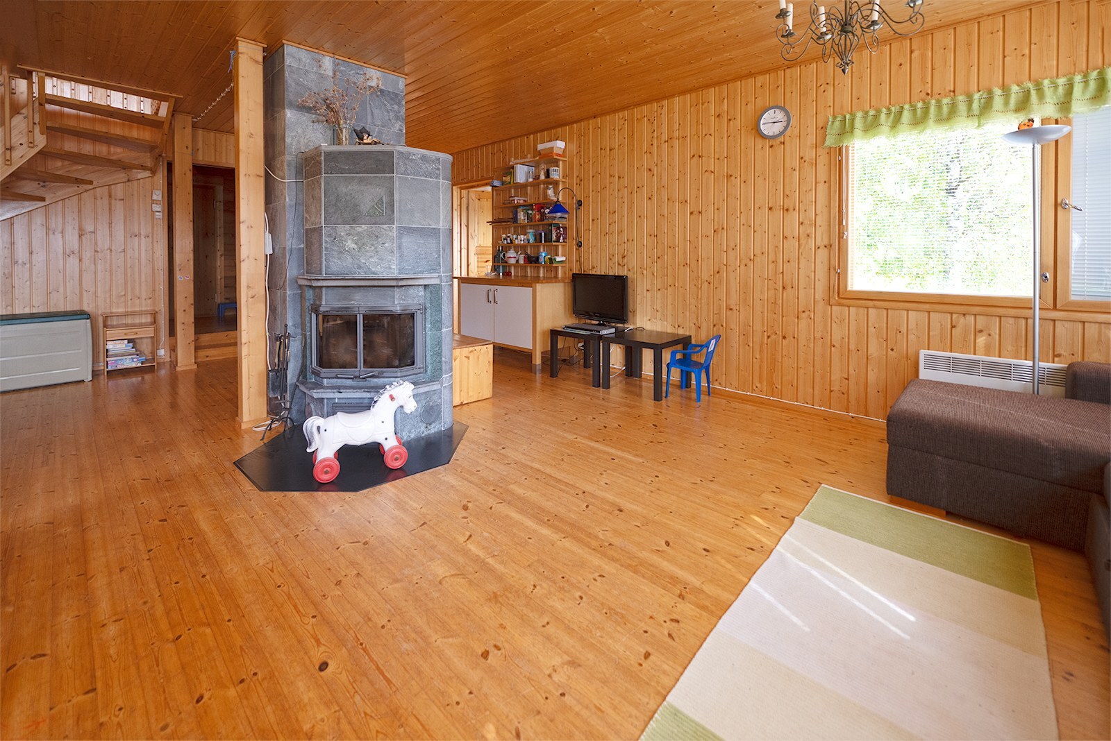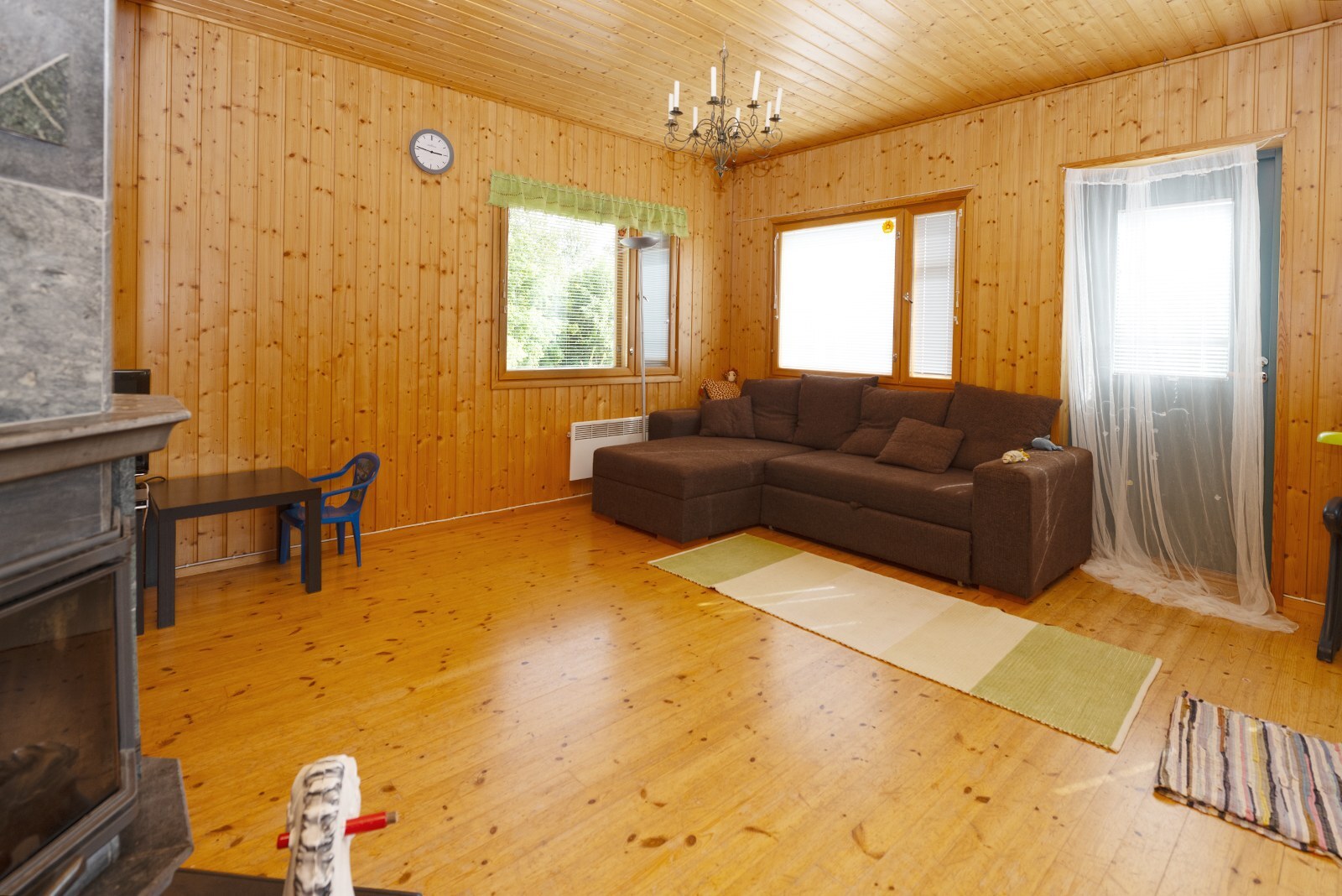 | Olohuoneen kuvaus | Seinät (puu), lattiat (lauta) |