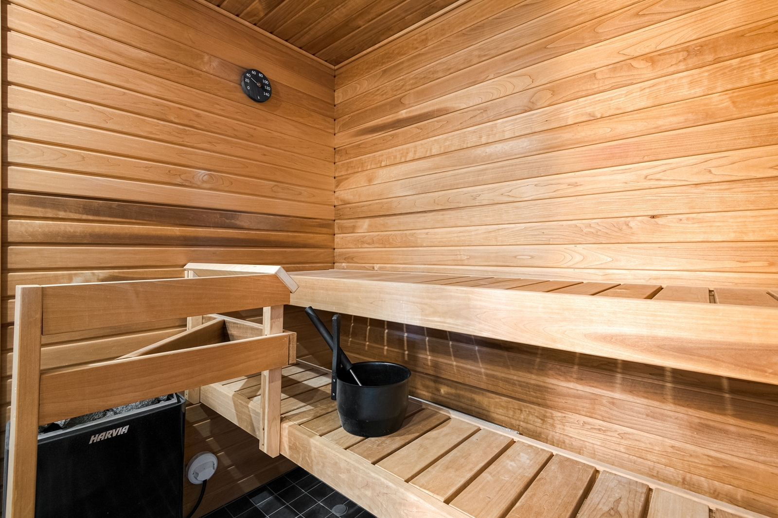 | Saunan kuvaus | Seinät (puu), lattiat (laatta), Sähkökiuas |