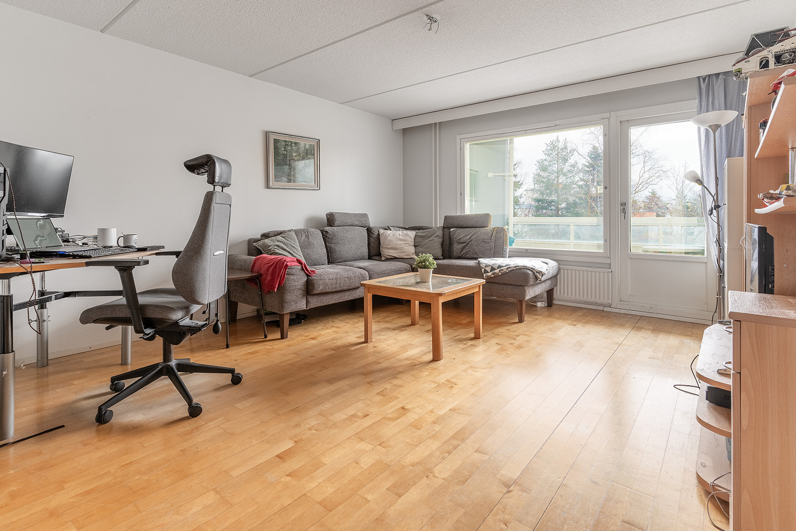 Toimiva pohjaratkaisu. Kolme mukavankokoista makuuhuonetta. Kaksi ovea rappukäytävään ja reilut eteistilat. Erillinen olohuone ja keittiö. Kylpyhuone, ja lisäksi vielä erillinen wc.