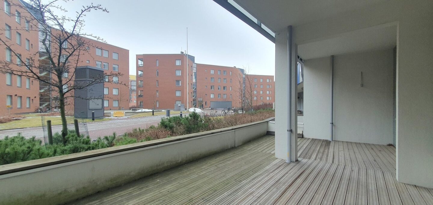 Asunnon olohuone on tilava ja sen yhteydessä on avokeittiö sekä osittain katettu isohko terassipiha, joka on tarvittaessa mahdollista lasittaa katetun tilan osalta. Makuuhuoneessa on hyvin kaappitilaa ja tilan eristävä liukuovi säästää mukavasti tilaa. Saunallinen kylpyhuone on hyvänkokoinen ja pyykinpesukoneellekin on mietitty paikka valmiiksi.