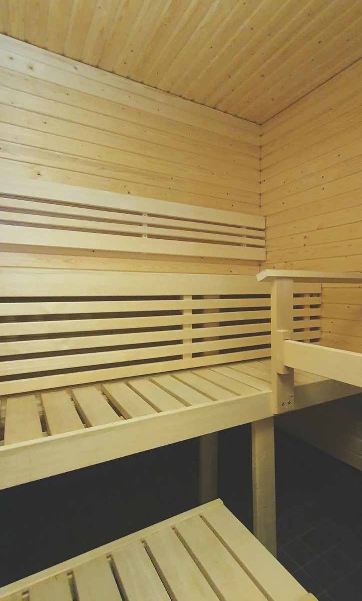| Saunan kuvaus | Seinät (puu), lattiat (laatta), Sähkökiuas |