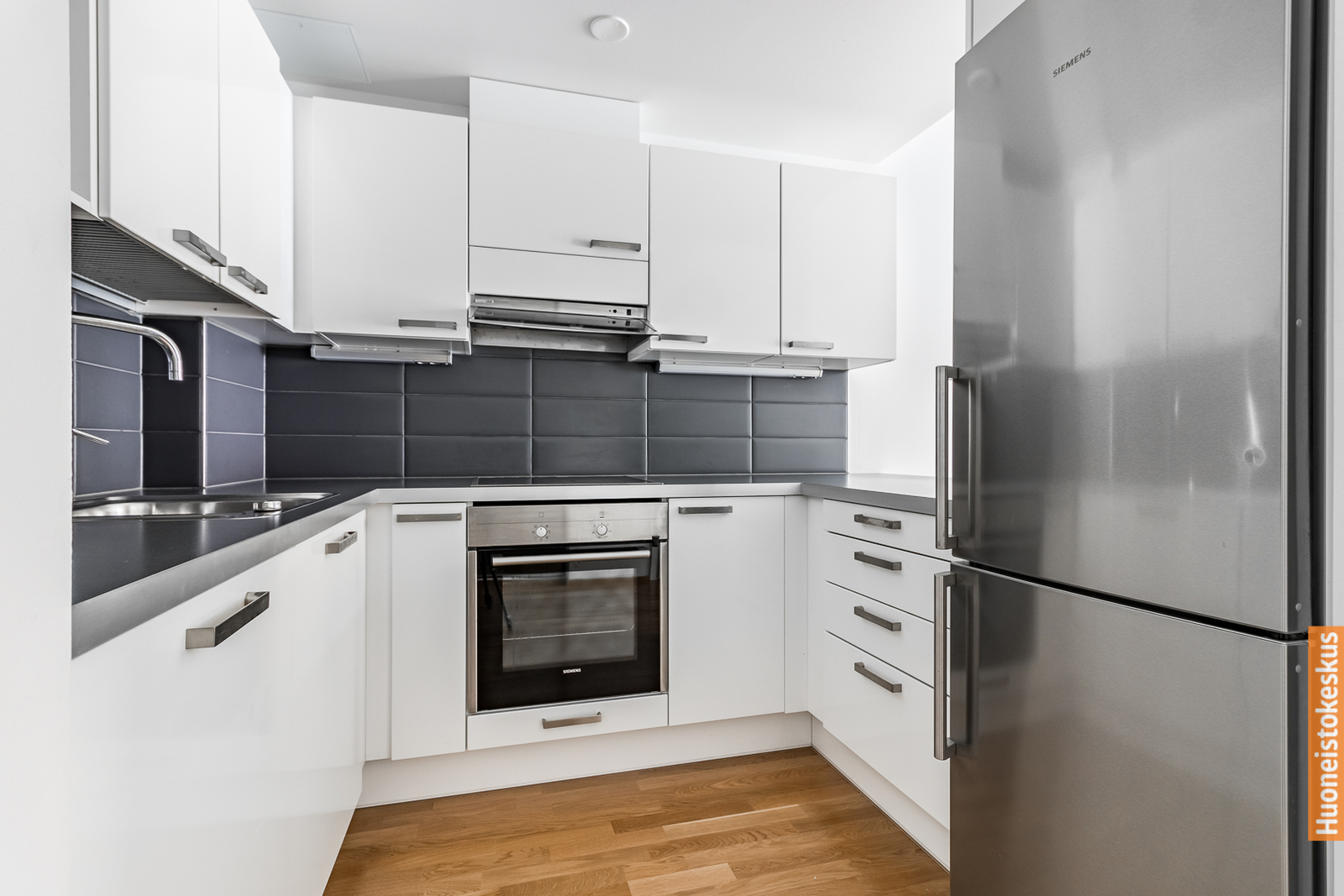 | Keittiön kuvaus | Liesi (Keraaminen liesi ja erillisuuni), työtasot (laminaatti), seinät (maali), lattiat (parketti), erillisuuni, liesituuletin, astianpesukone, jääkaappipakastin ja kiinteät valaisimet |