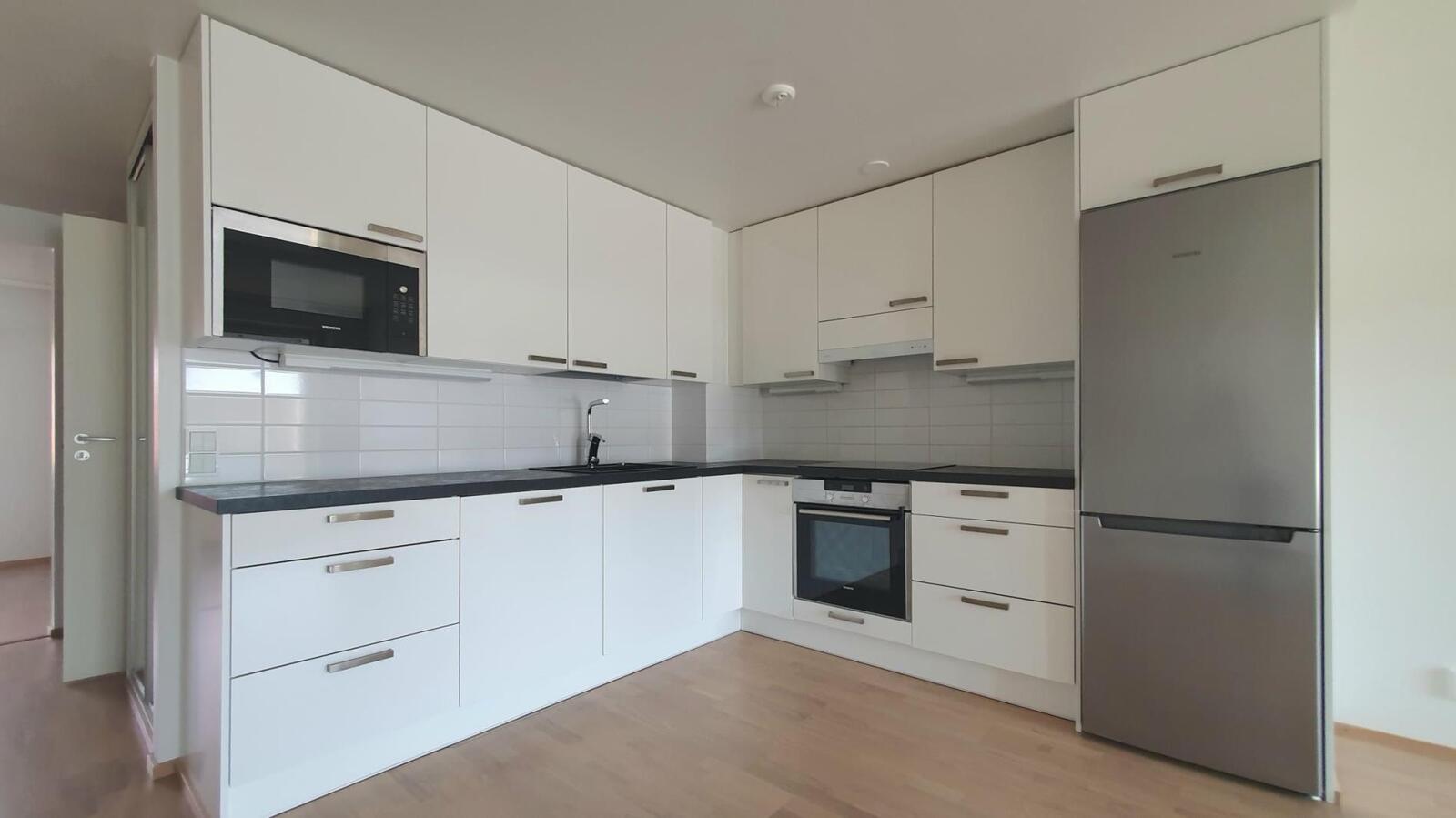 Hyväpohjainen läpitalon kaksio vuonna 2018 valmistuneen talon viidennessä kerroksessa.