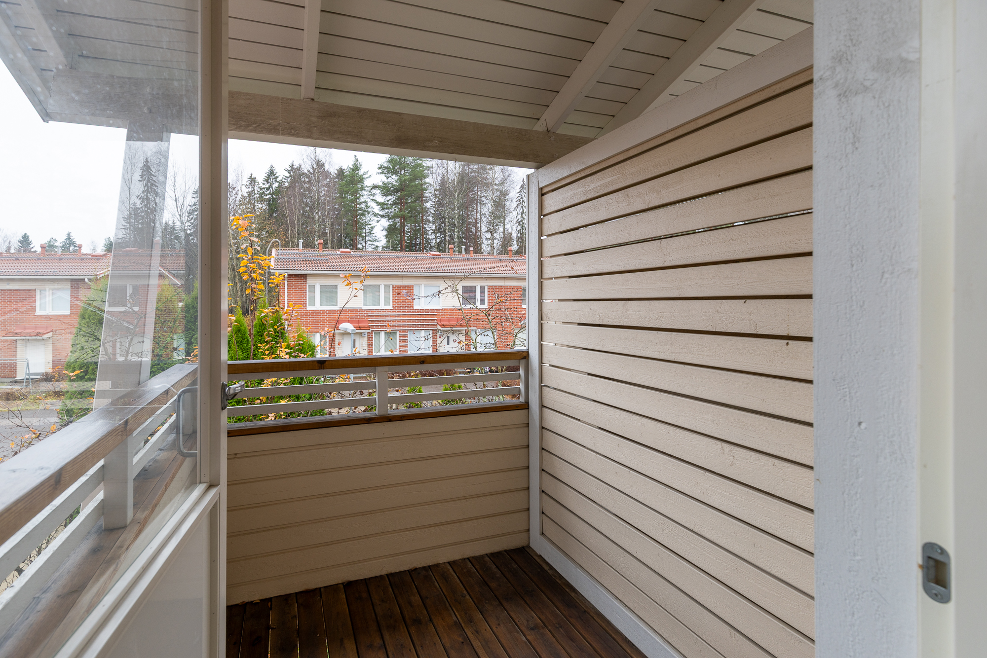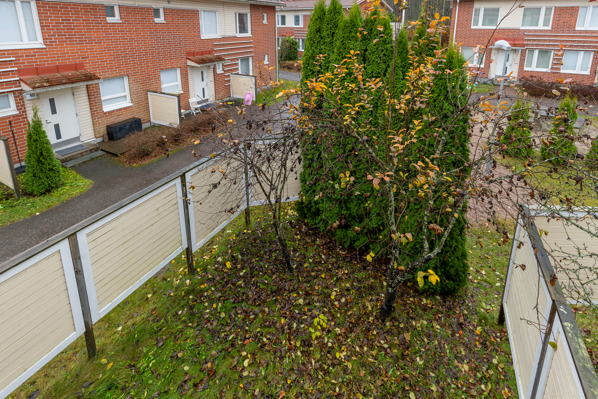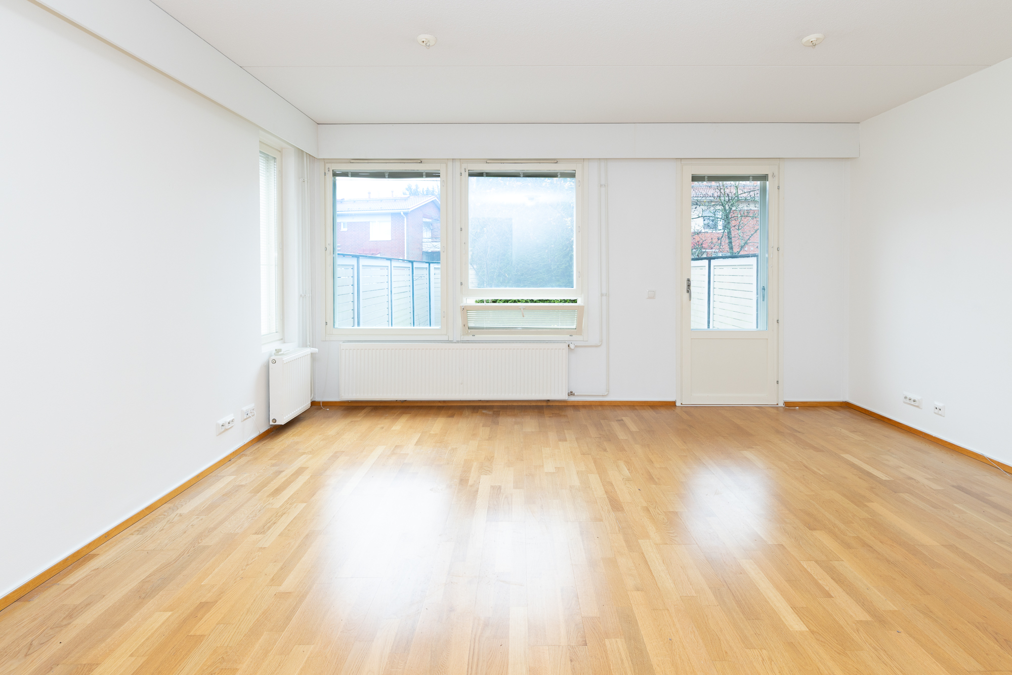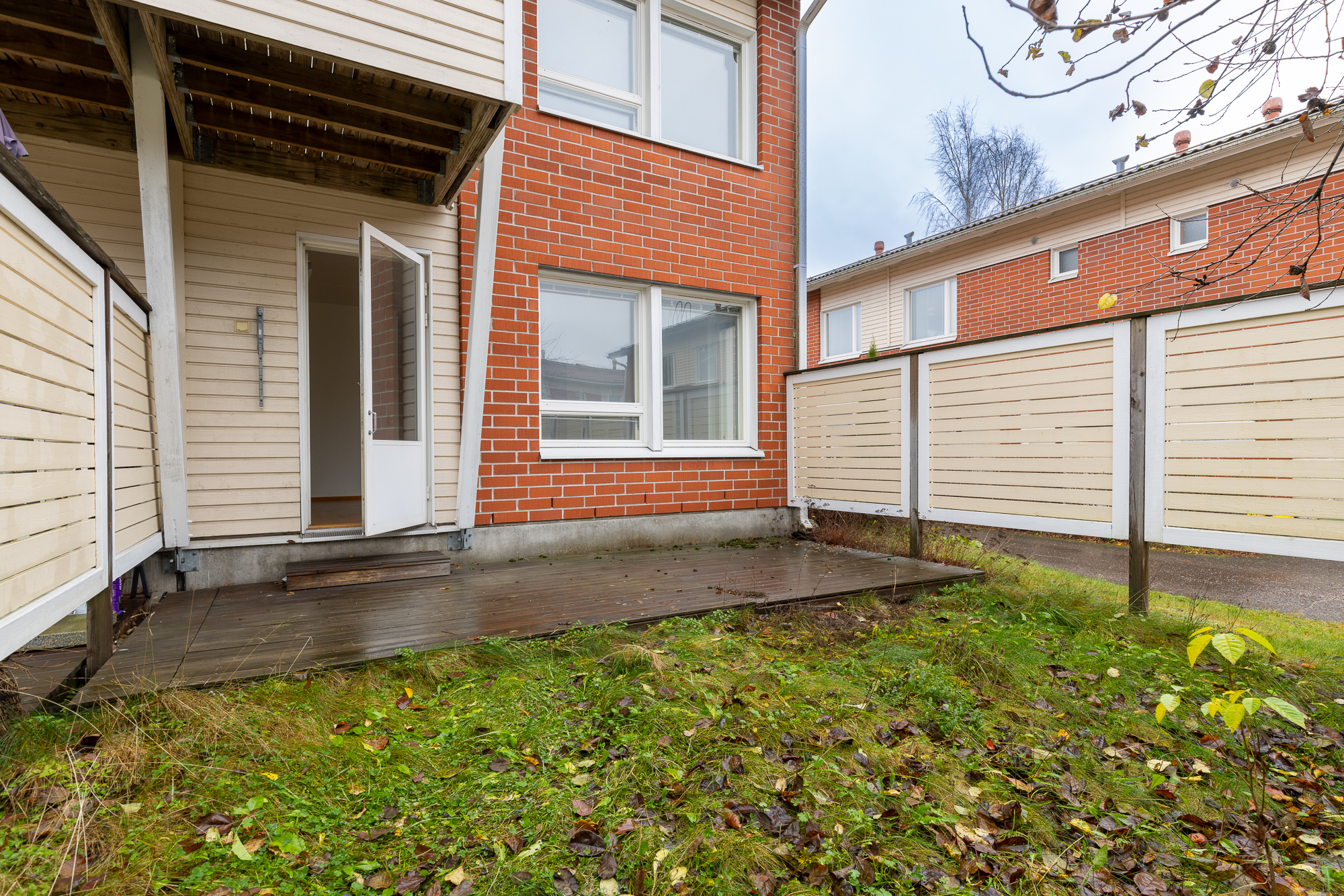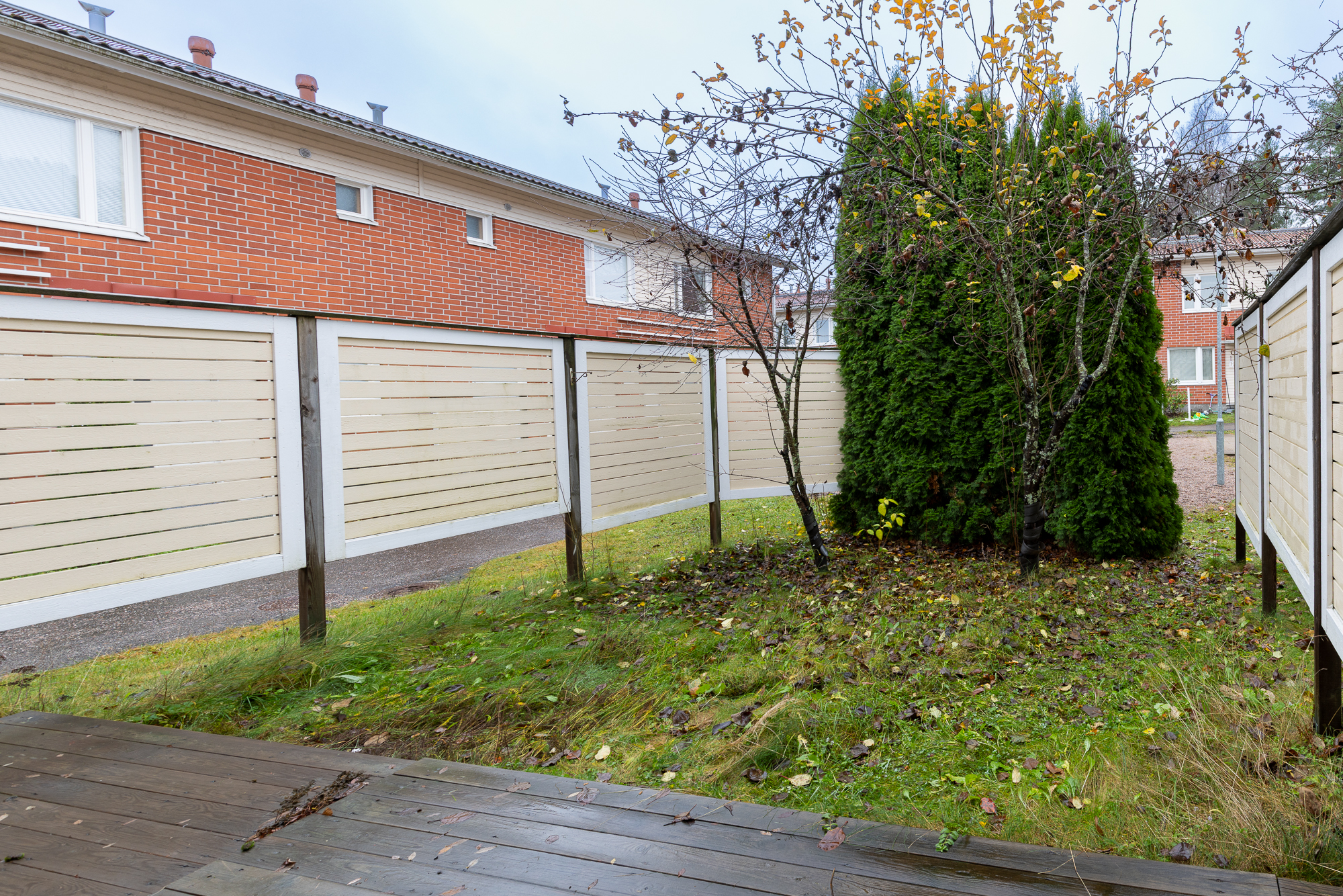 Asunnon sydän on avara olohuone, josta on käynti terassille ja omalle pihalle. Piha-alueella on nurmikkoa, Tuijia sekä omenapuu ja kirsikkapuu, jotka luovat viihtyisän ulkoilmakeitaan. Keittiö on hyvin varusteltu ja sieltä löytyy muun muassa jääkaappipakastin, astianpesukone ja keraaminen liesi.