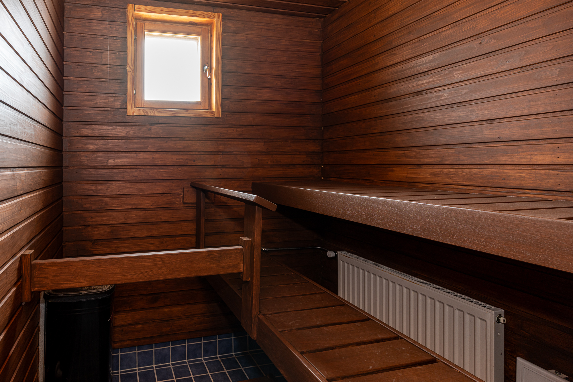 | Saunan kuvaus | Seinät (paneeli), lattiat (laatta), Sähkökiuas |