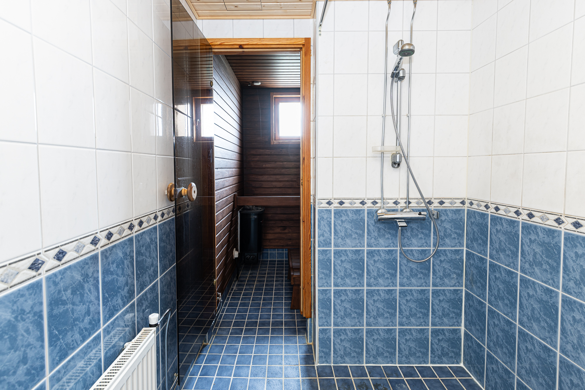 Kylpyhuone on moderni ja varusteltu lattialämmityksellä sekä pesukoneliitännällä. Lisäksi asunnossa on oma sauna, jossa on sähkökiuas, mikä tarjoaa rentouttavia hetkiä arjen keskellä. Kaksi makuuhuonetta tarjoavat rauhalliset puitteet levolle, ja parveke avautuu lounaaseen, mikä takaa iltapäivän auringonvalon.