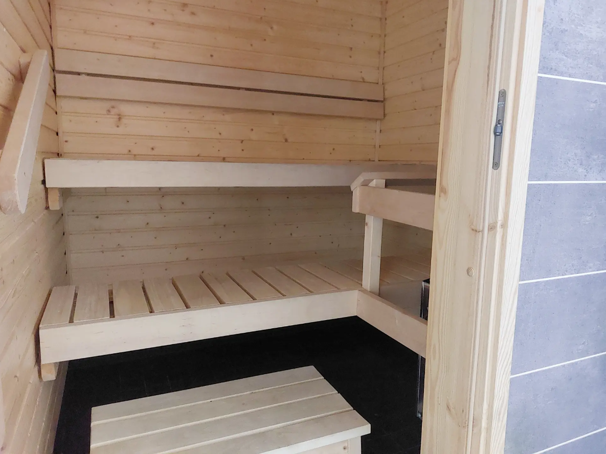 | Saunan kuvaus | Seinät (puu), lattiat (laatta), Sähkökiuas |