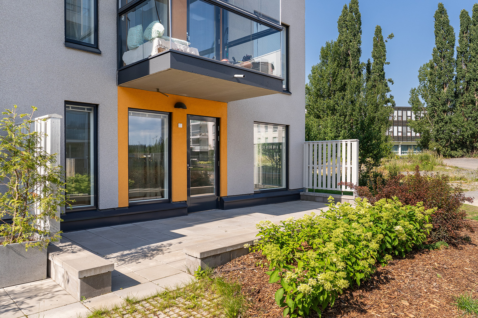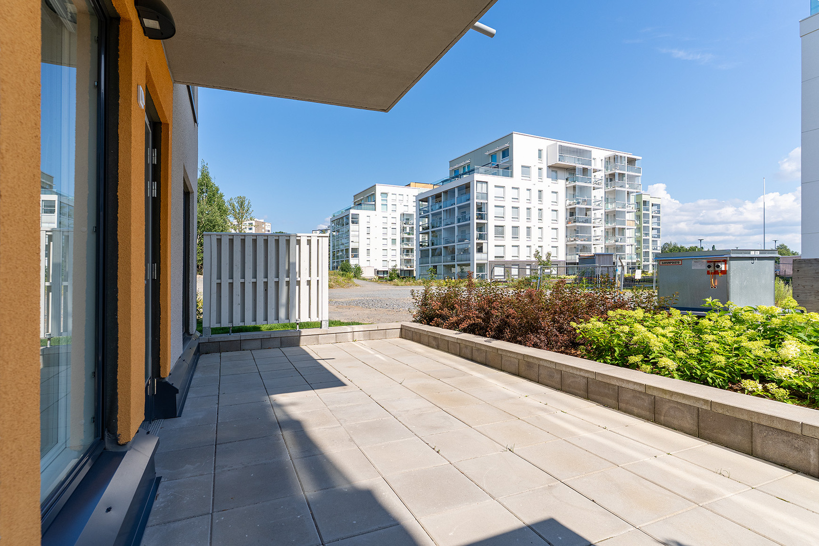 Kaiken kruunaa tilava, koko huoneiston levyinen terassi, jolla nautit vaikkapa kesäiset aamukahvit,
