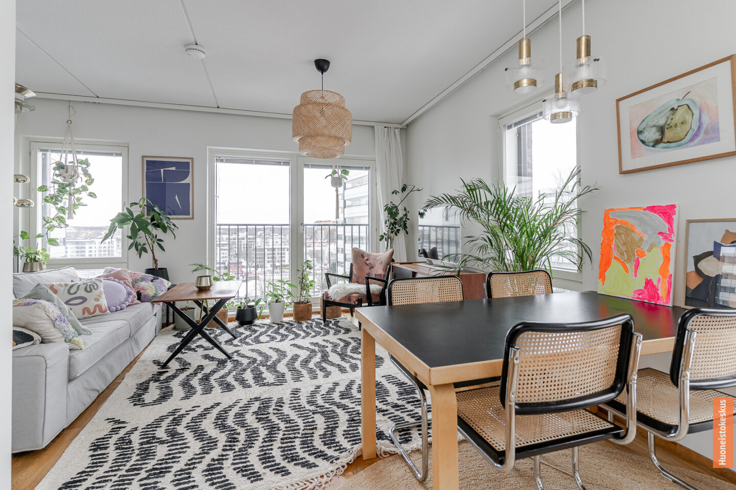 Asunnon sydämen muodostava tavara olohuone sekä tyylikäs ja moderni avokeittiö. Kolme tilavaa makuuhuonetta, kylpyhuone, sauna ja erillinen wc. Kaunis parkettilattia ja vaaleat sävyt luovat harmonisen kokonaisuuden, jossa arki sujuu mutkattomasti ja asumismukavuudesta nautitaan. Suuret ikkunat tuovat runsaasti luonnonvaloa ja tekevät kodista ilmavan.