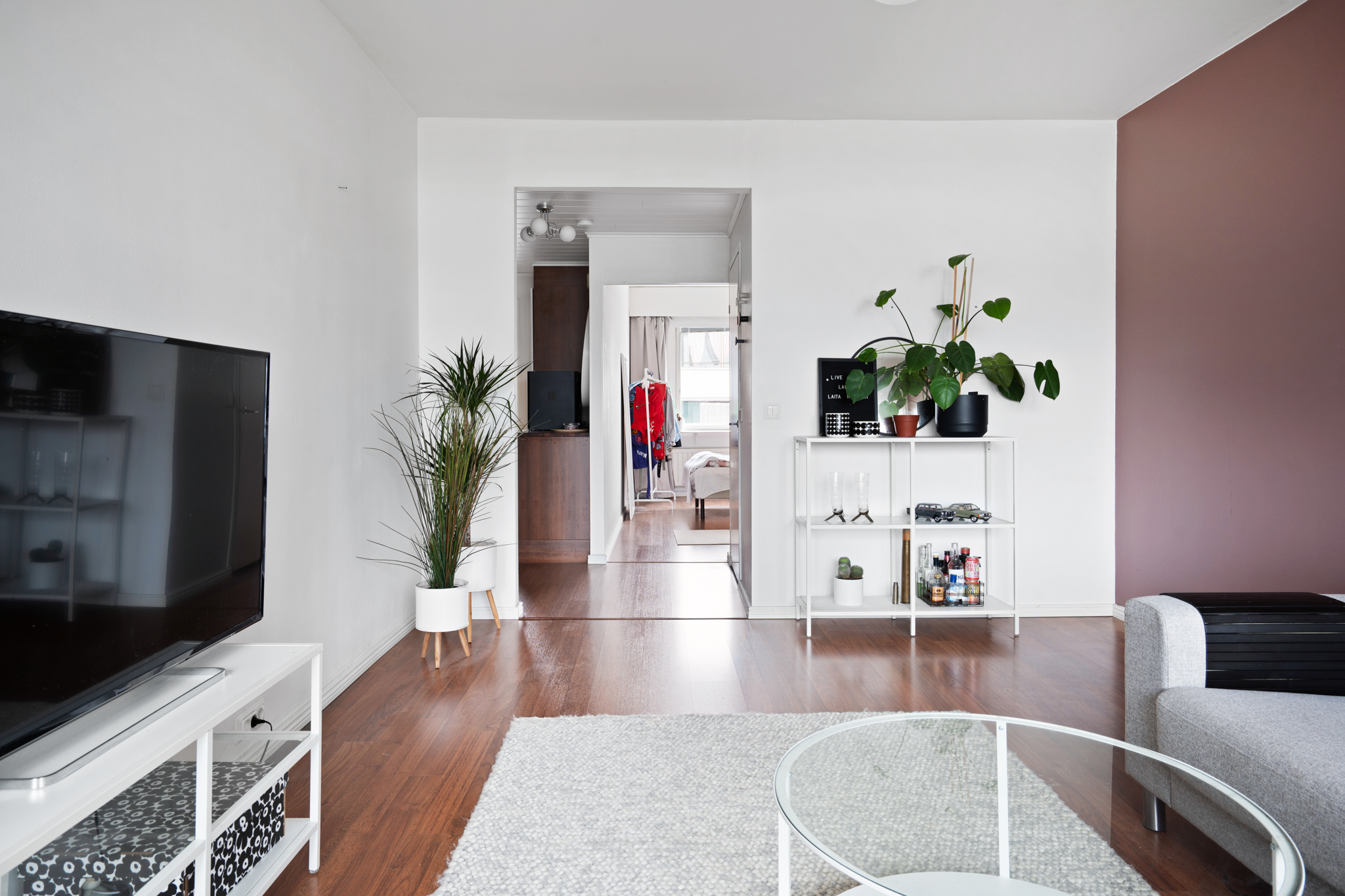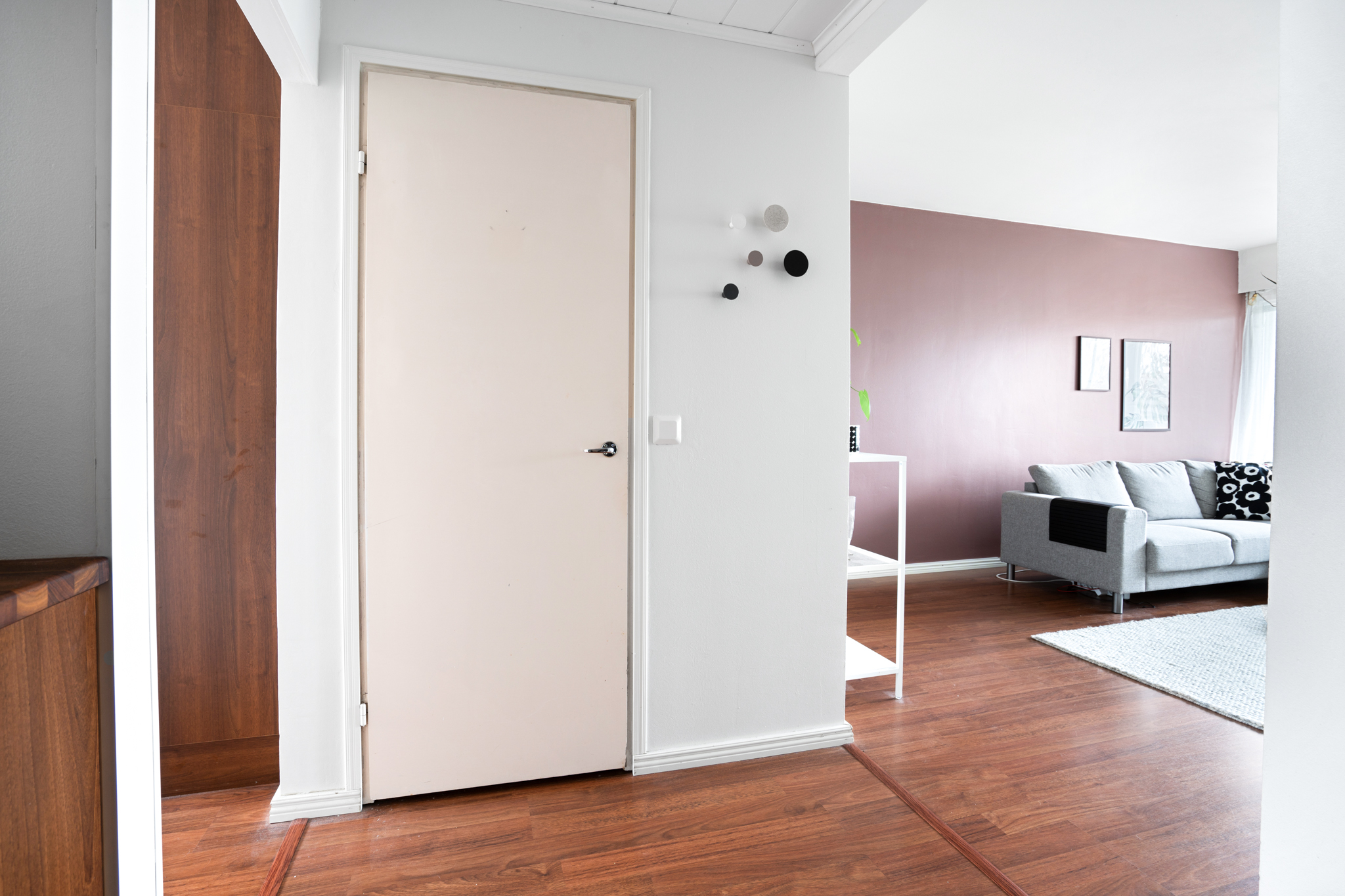 | Olohuoneen kuvaus | Seinät (maali), lattiat (laminaatti) |