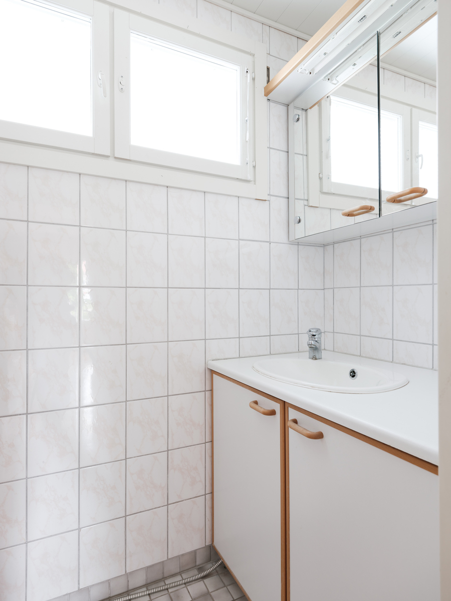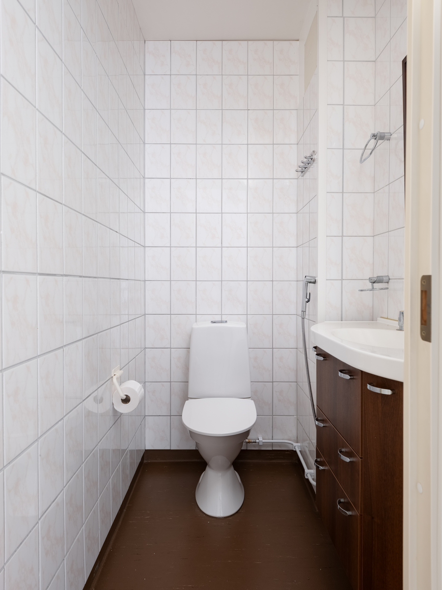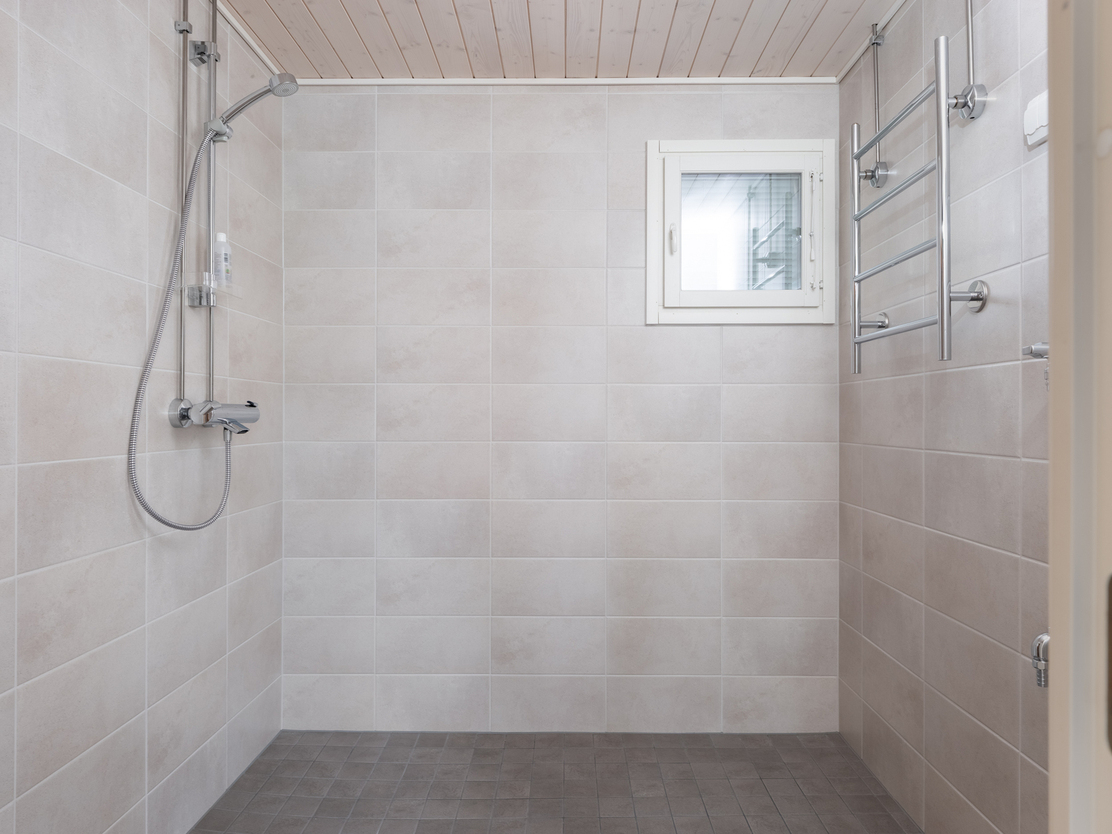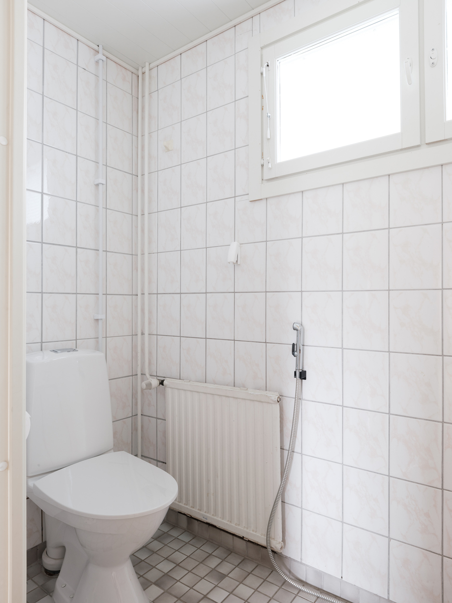 | Kylpyhuoneen kuvaus | Suihku ja pesukoneliitäntä, seinät (kaakeli), lattiat (laatta) |