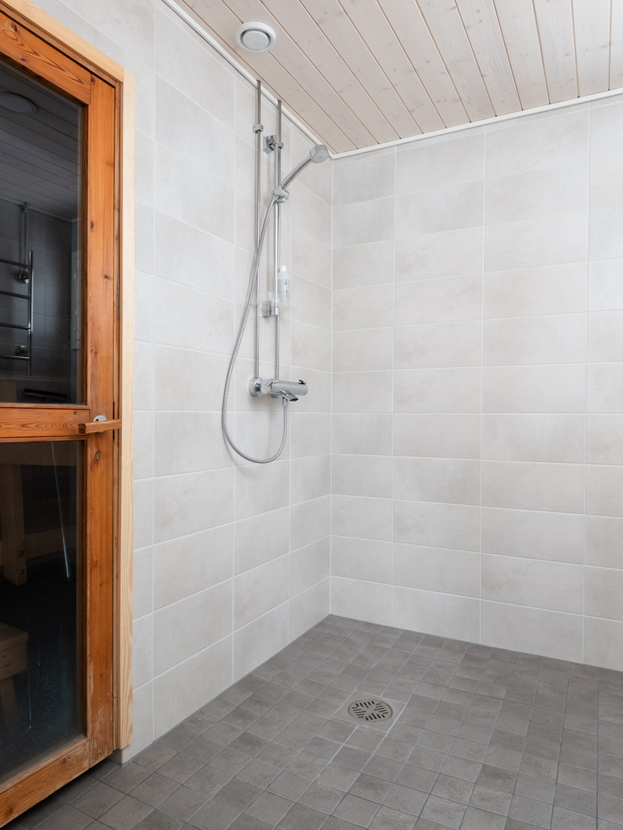 | Saunan kuvaus | Seinät (puu), lattiat (laatta), Sähkökiuas |