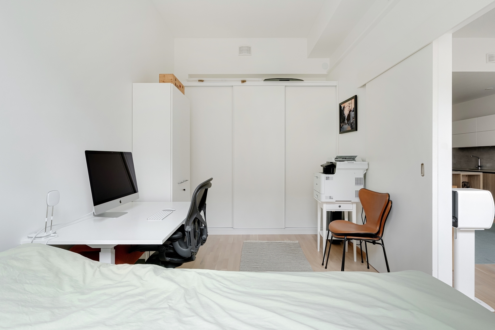– Asunnossa on kaksi makuuhuonetta ja näiden välissä on avokeittiö ja olohuone, kylpyhuone, oma sauna ja eteinen.