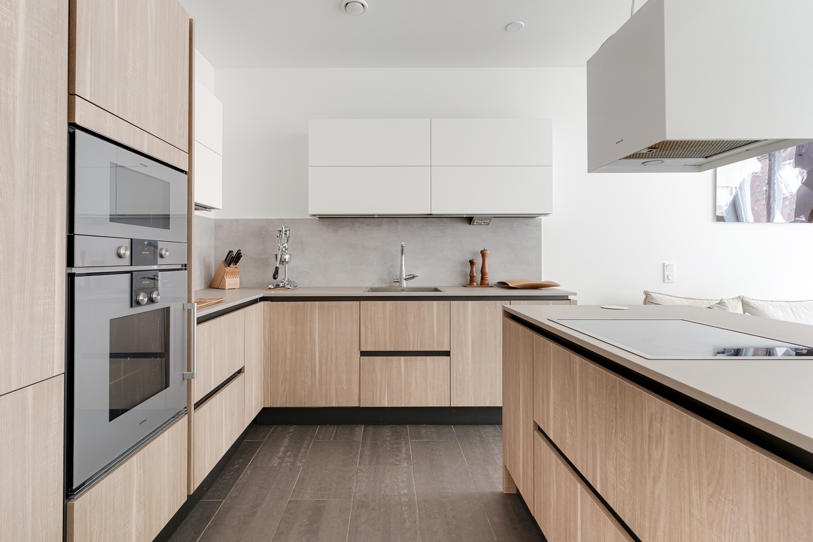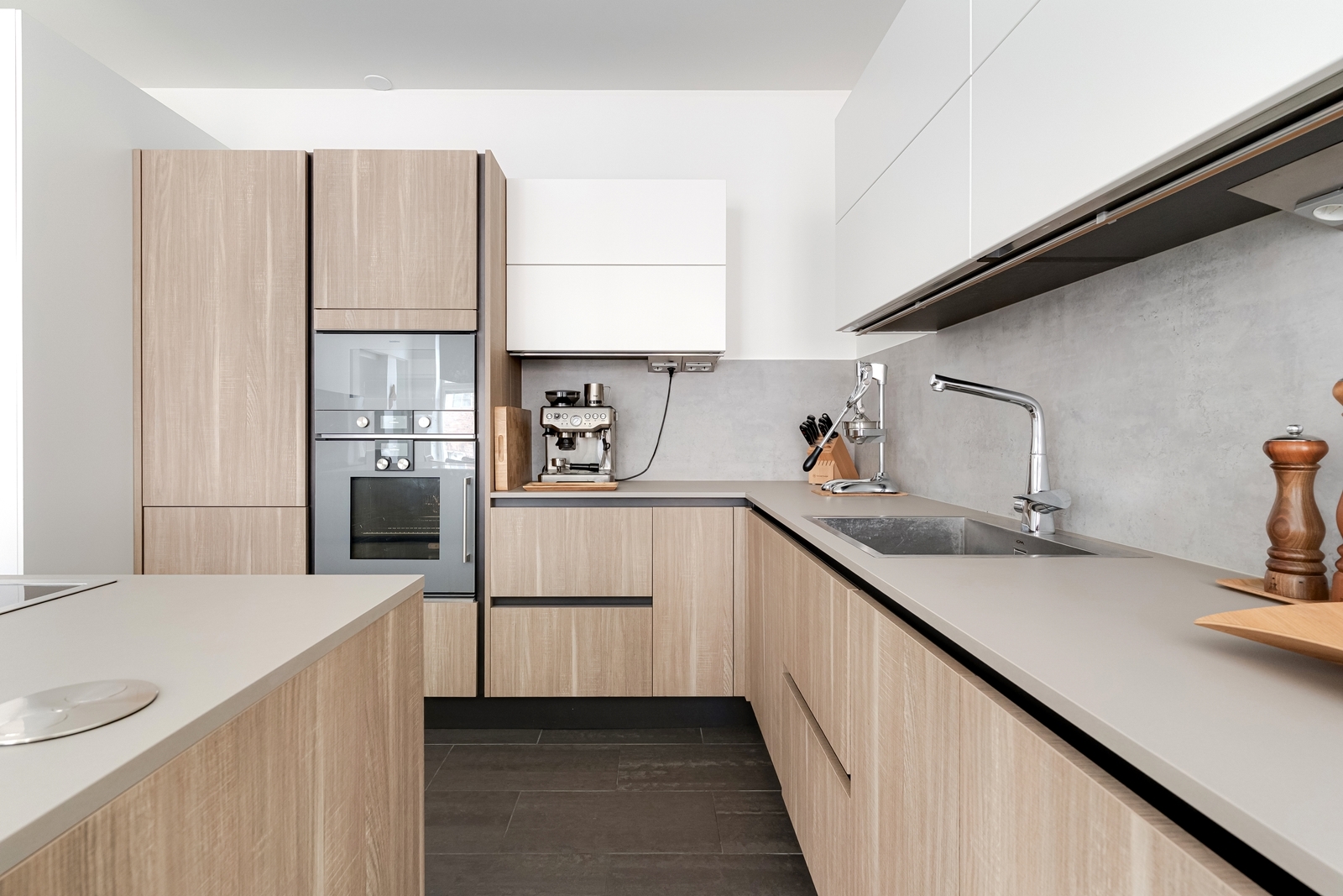 – Tyylikäs avokeittiö on varustettu laadukkailla Gaggenaun kodinkoneilla – täydellinen paikka kokkaushetkiin ja illanistujaisiin.