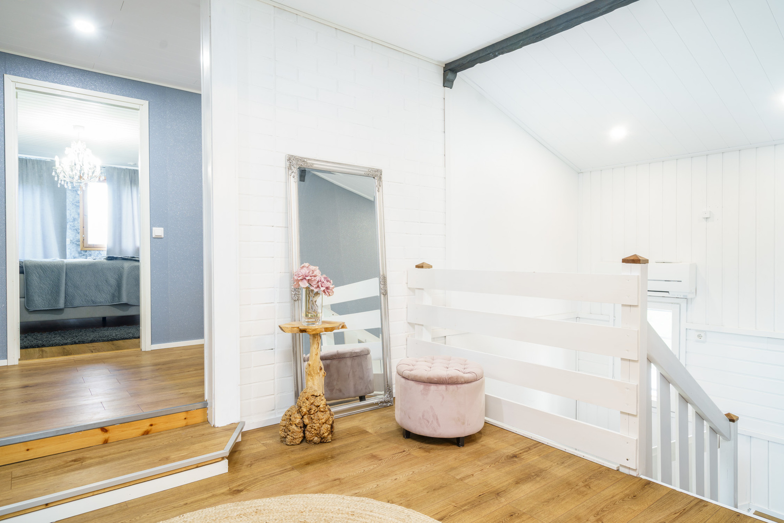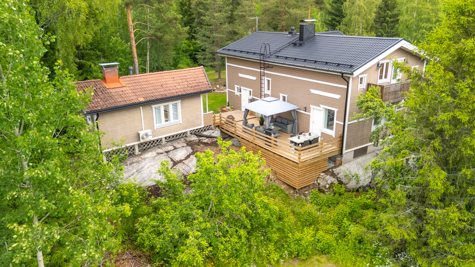 | Tehdyt remontit | 2023-2025 remontoitu mm: Talo: Vesikate, rännit ja kattoturvatuotteet uusittu. Terassi tehty. Kylpyhuone ja kodinhoitohuone uusittu. Keittiö koneineen uusittu. Lämminvesivaraaja uusittu. Vessojen pinnat ja kalusteet uusittu. Takka tehty. Lattiapinnat uusittu. Seinäpinnat ja katot tapetoitu ja maalattu. Ilmalämpöpumppu uusittu. Patterit uusittu. Alapohjaa lisäeristetty. Saunarakennus: Rännit ja syöksyt uusittu. Ilmalämpöpumppu, wc pönttö, suihku, keittiöhana uusittu. Piipunhattu asennettu. Alapohja lisäeristetty. |