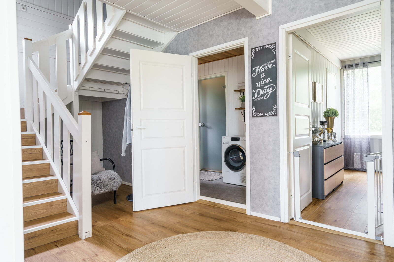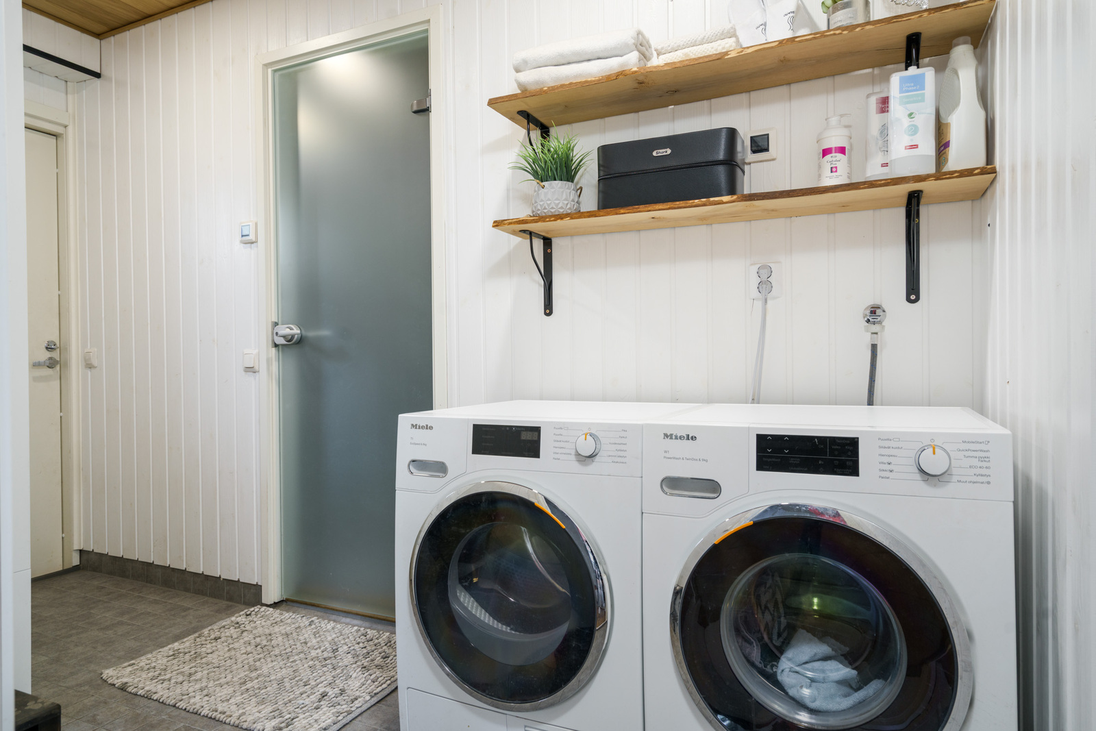 | Kodinhoitohuoneen kuvaus | Pesukoneliitäntä, lattiat (laatta), seinät (maali) |