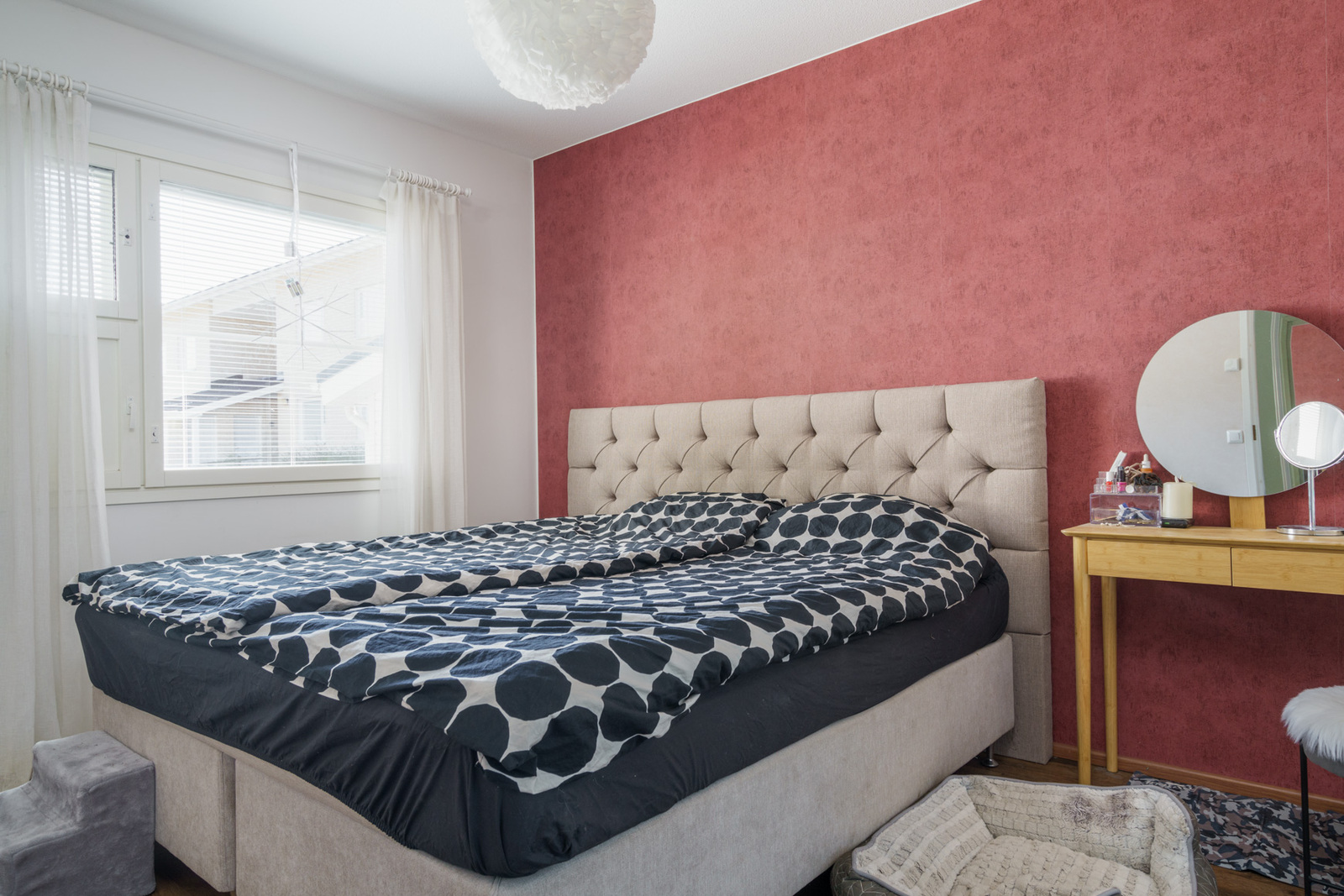 | Makuuhuoneen kuvaus | Lukumäärä: 1, seinät (maali ja tapetti), lattiat (laminaatti) |