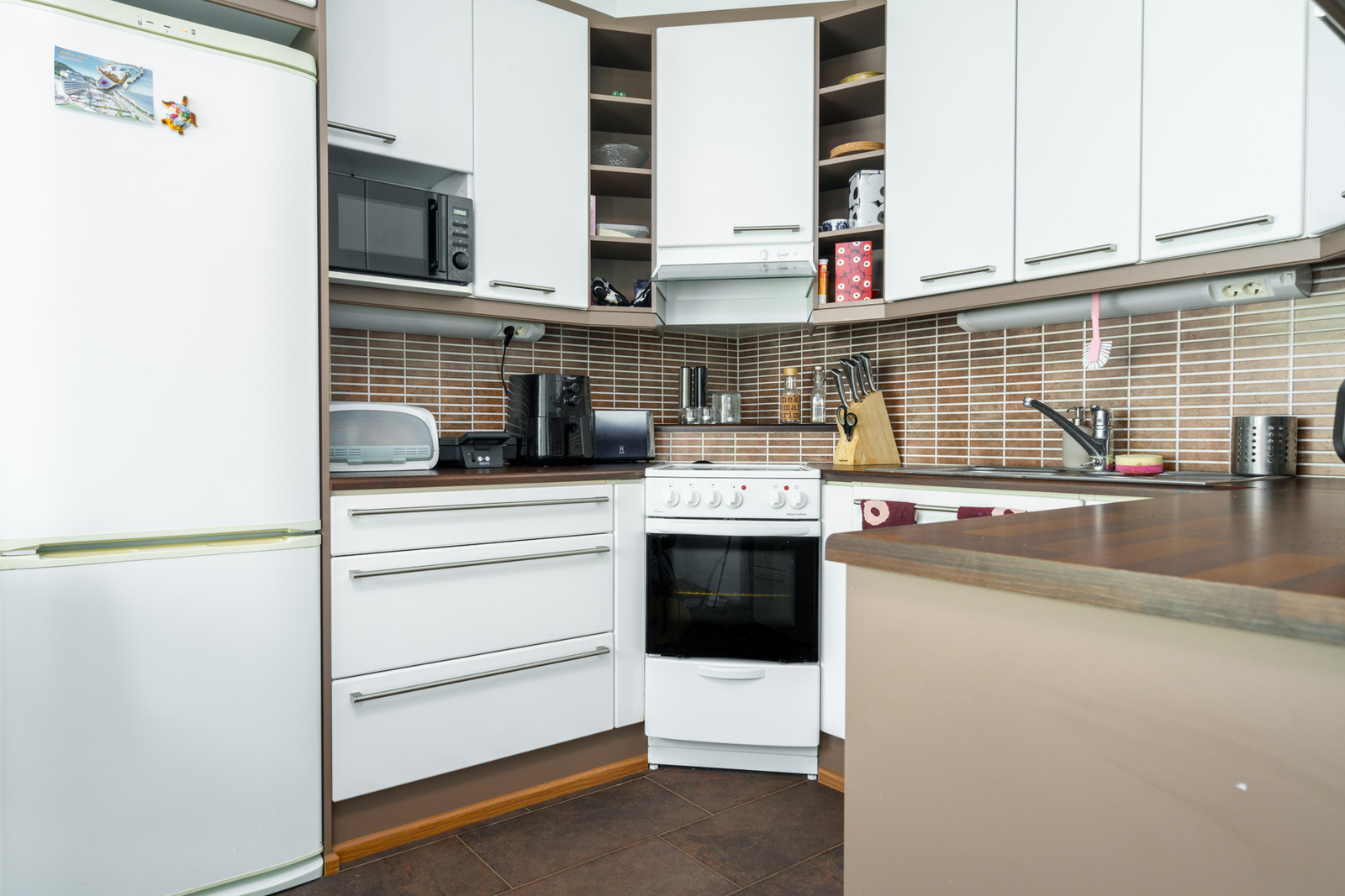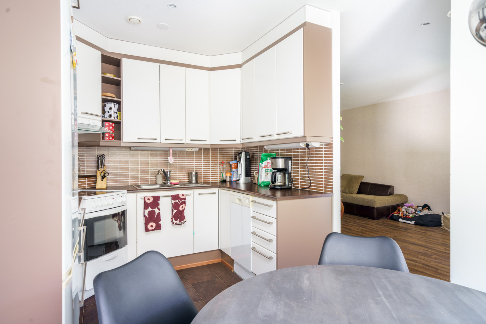 | Keittiön kuvaus | Liesi (Keraaminen liesi), työtasot (laminaatti), seinät (osalaatoitus), lattiat (laatta), liesituuletin, jääkaappipakastin ja astianpesukone |
