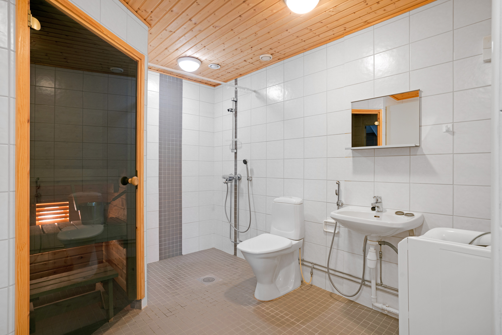 Asunnosta löytyy oma sauna, reilunkokoinen kylpyhuone sekä erillinen vaatehuone, jotka tarjoavat arkeen sujuvuutta ja runsaasti säilytystilaa. Maantasossa sijaitseva oma sisäänkäynti tekee kulkemisesta helppoa esimerkiksi pyörien, tai lastenvaunujen kanssa.
