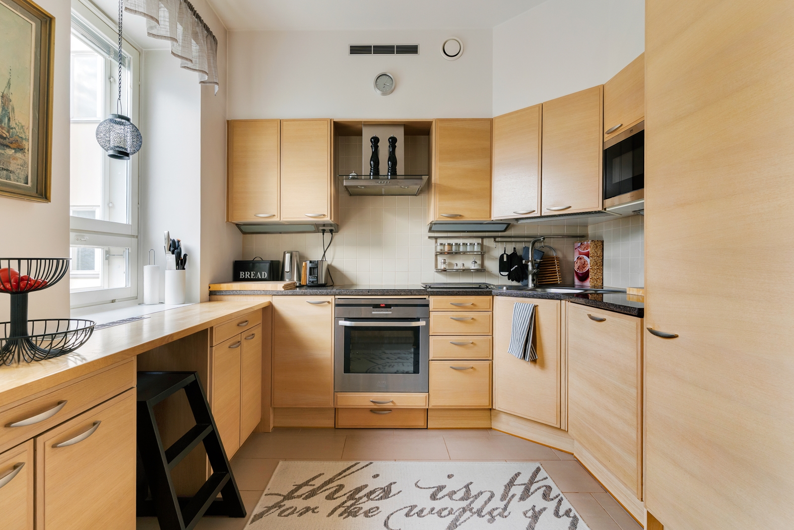 Asunnon keittiö on remontoitu vuonna 2006, ja se on varusteltu laadukkailla integroiduilla kodinkoneilla. Olohuone ja makuuhuoneet ovat avaria ja valoisia, ja koko asunnossa on kaunis parkettilattia. Kylpyhuone, sauna ja erillinen wc ovat uudistettu taloyhtiön linjasaneerauksen yhteydessä, mikä takaa modernit ja toimivat tilat.