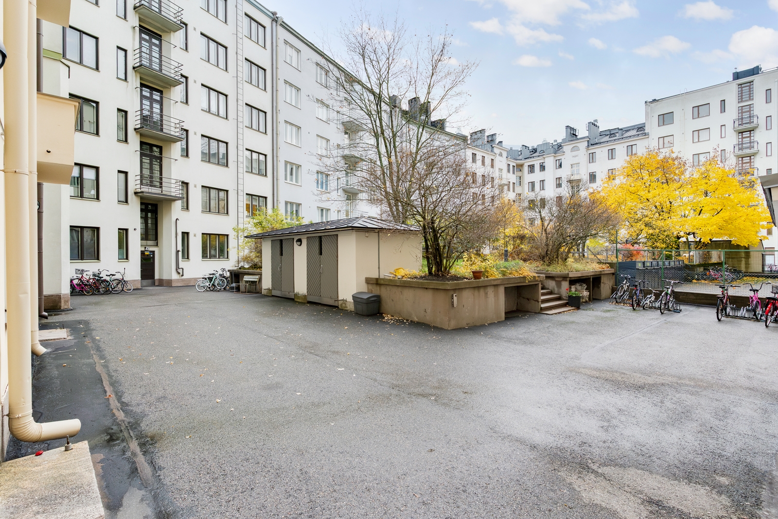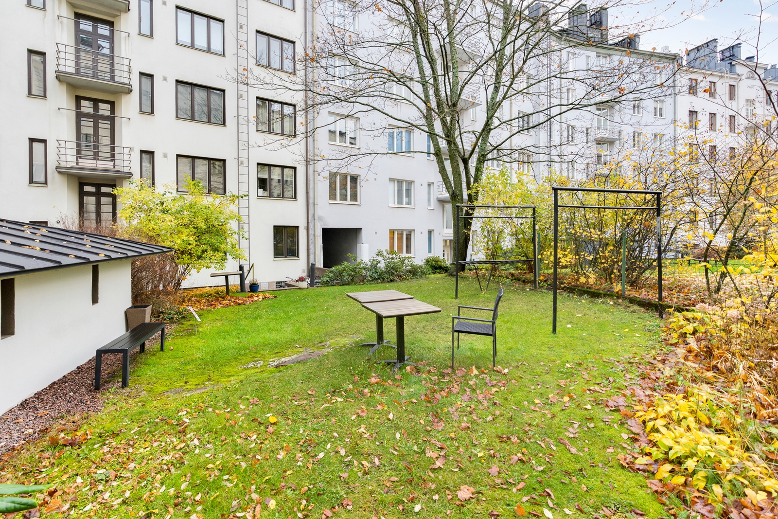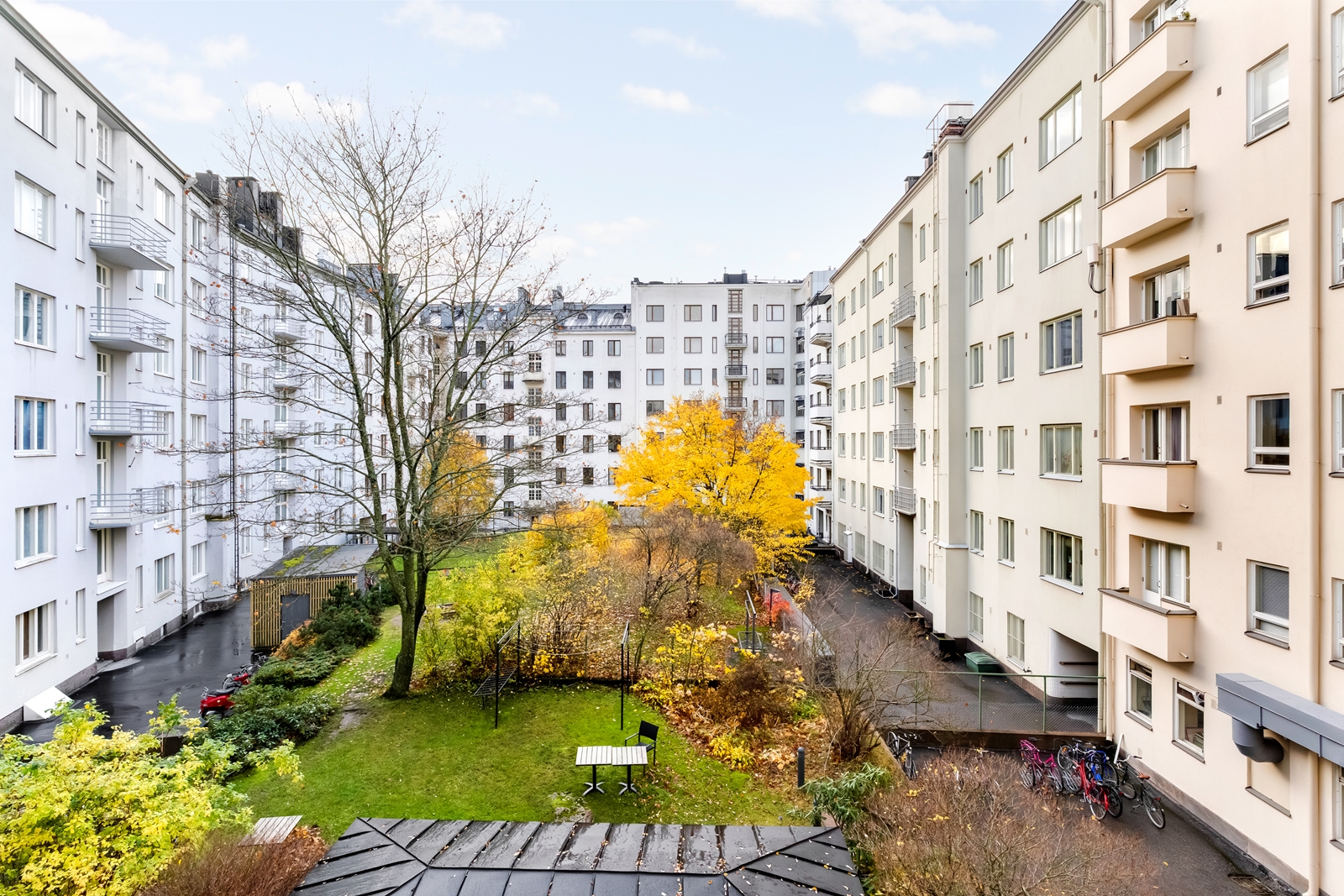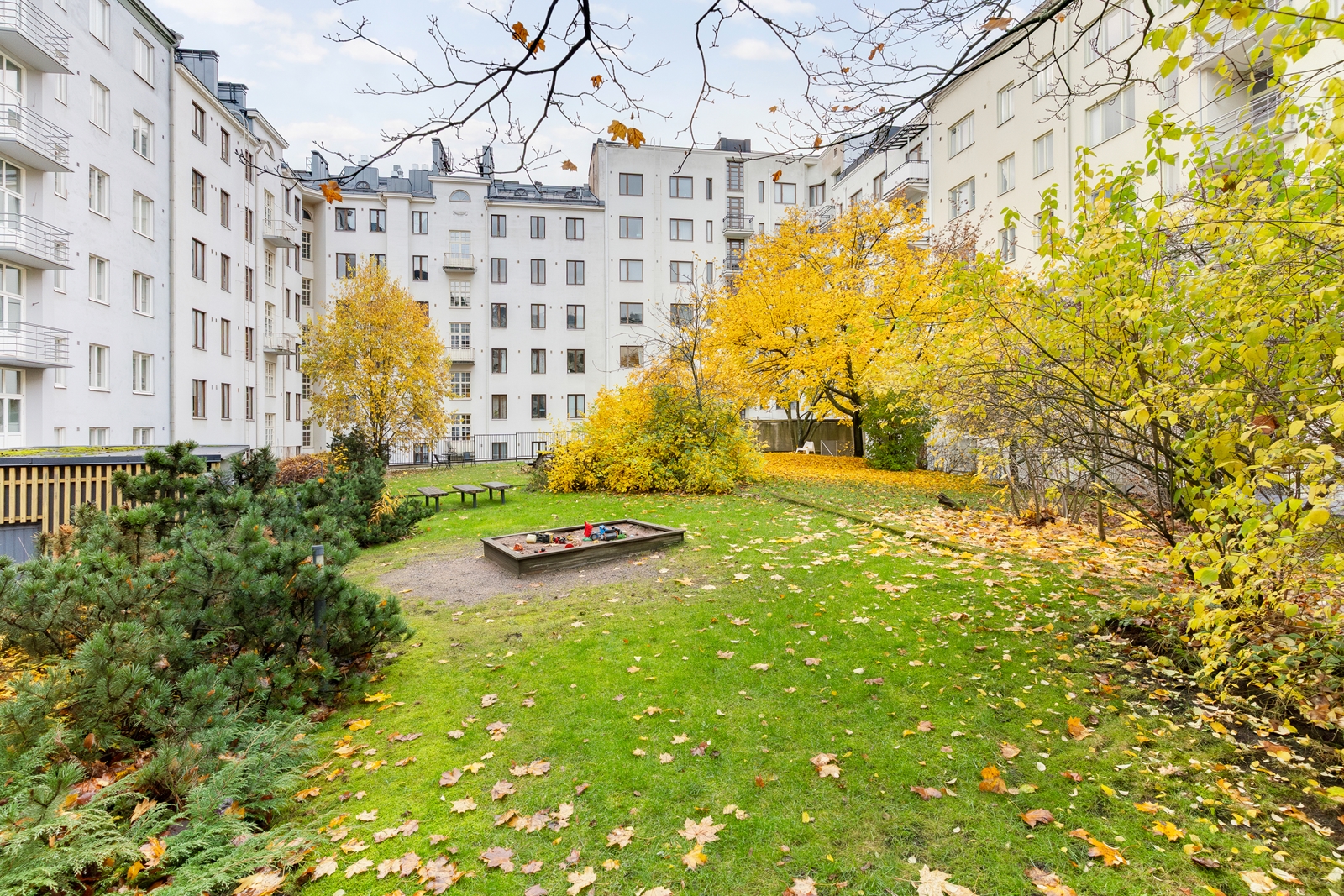 Sijainti on erinomainen: raitiovaunupysäkki on vain 200 metrin päässä, ja lähikauppa Alepa Töölöntori sijaitsee aivan kulman takana. Lähistöllä on useita kouluja ja päiväkoteja, mikä tekee alueesta ihanteellisen perheille.