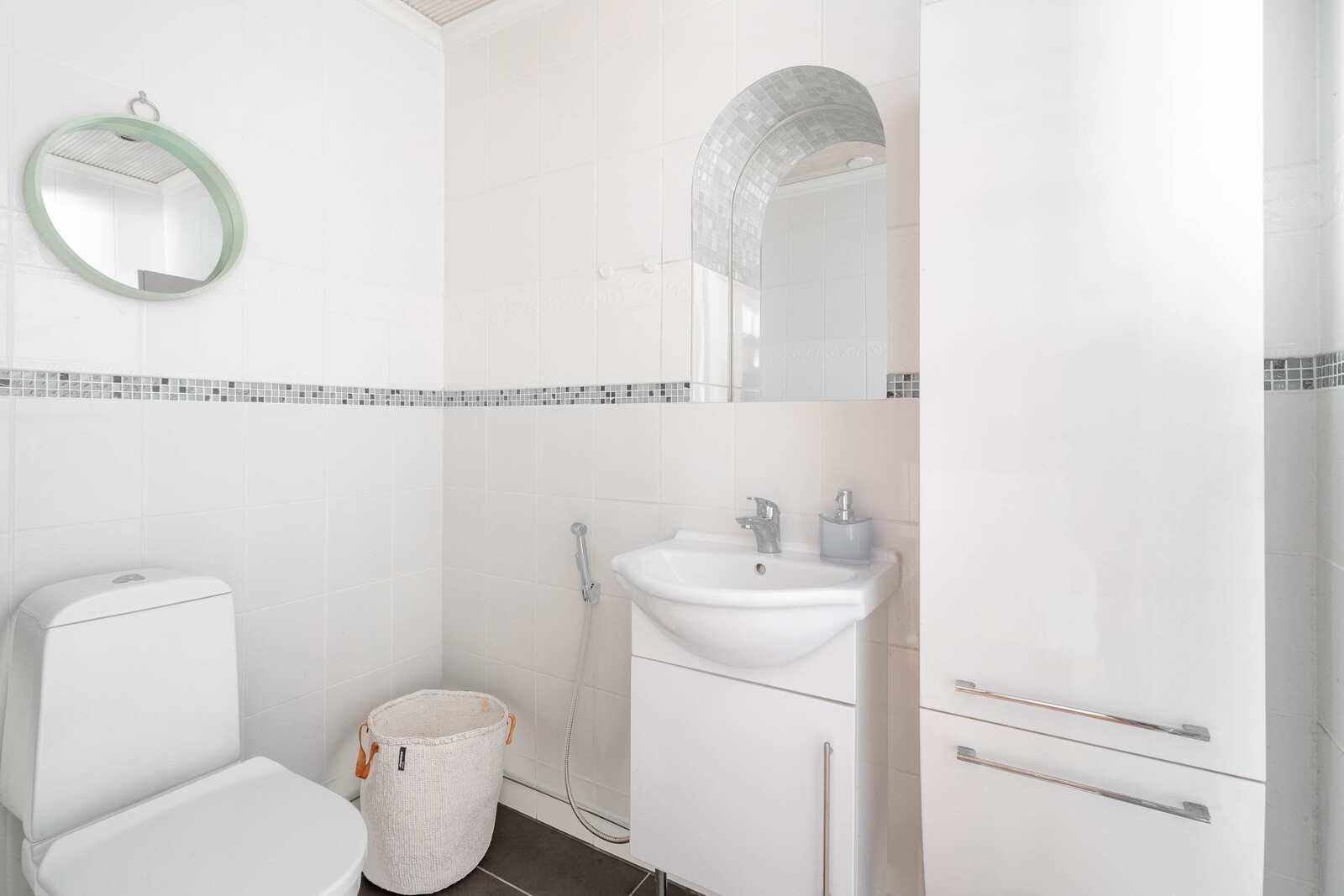 Lukumäärä: 1, Bidee-suihku, peilikaappi ja lattialämmitys, seinät (Kaakeli), lattiat (Laatta) |