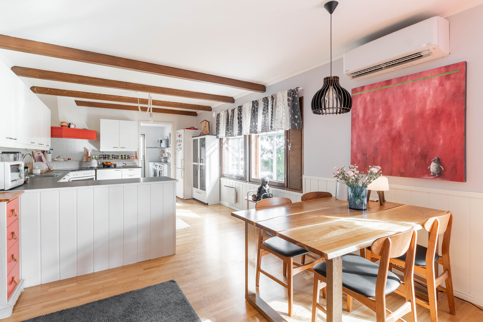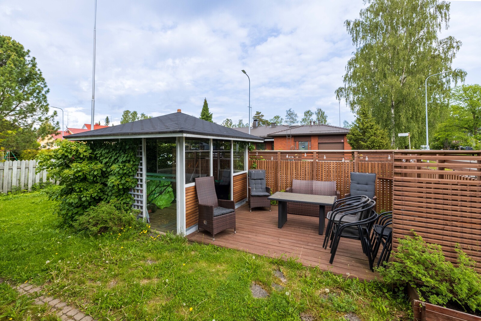 Tästä ostettavaksi yksitasoinen, pienen perheen talo Puistolan paraatipaikalta! Talon keittiö ja olohuone ovat avaraa yhtenäistä tilaa. Tilavaan kodinhoitotilaan mahtuu pyykkihuolto ja siitä pääset myös kätevästi suoraan terassille ja huvimajalle. Parkettilattiat ja seinäpinnat ovat hyvässä kunnossa. Koiranomistajille tämän talon piha on jo valmiiksi aidattu.