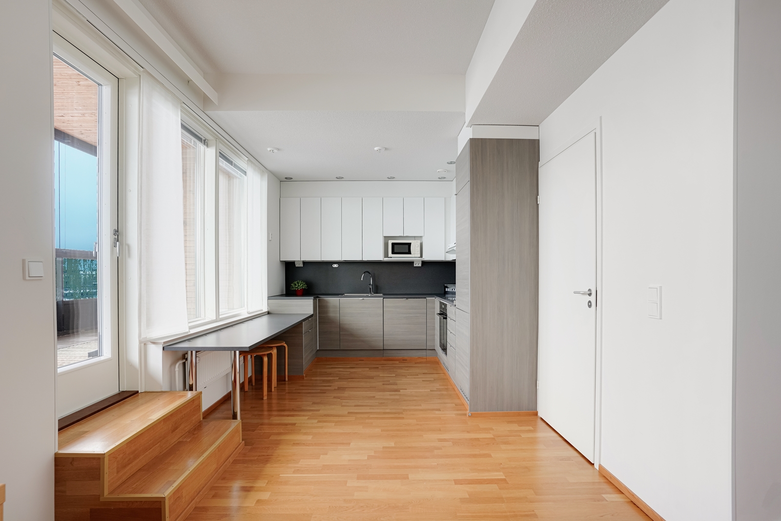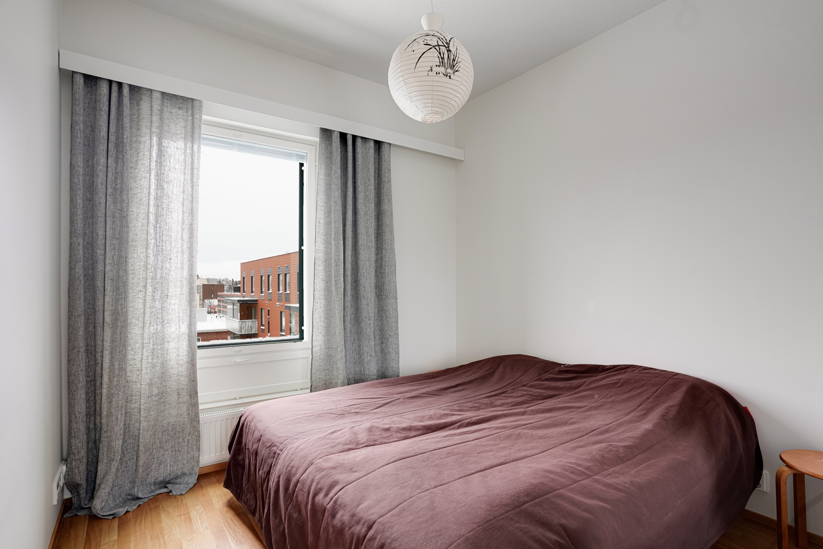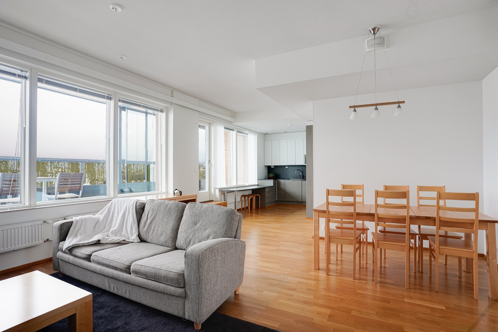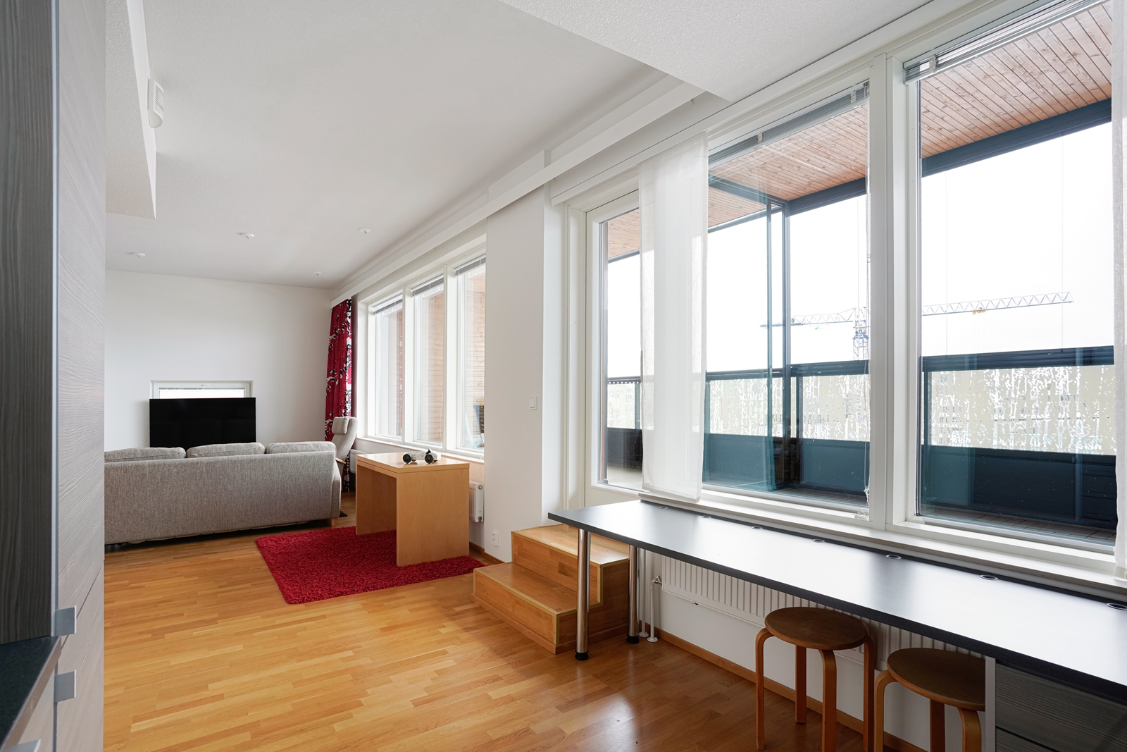 Tämä valoisa ja moderni asunto sijaitsee Joensuun keskustassa, Torikatu 33:ssa. Asunto on rakennuksen ylimmässä kerroksessa, josta avautuvat näkymät keskustaan olohuoneesta ja keittiöstä. Makuuhuoneista puolestaan on rauhalliset pihanäkymät.