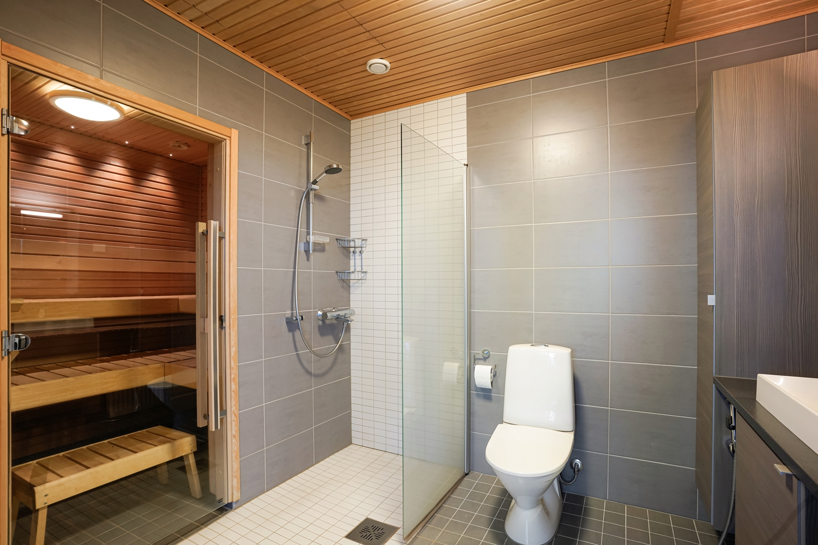 | Saunan kuvaus | Seinät (puu), lattiat (laatta), Sähkökiuas |