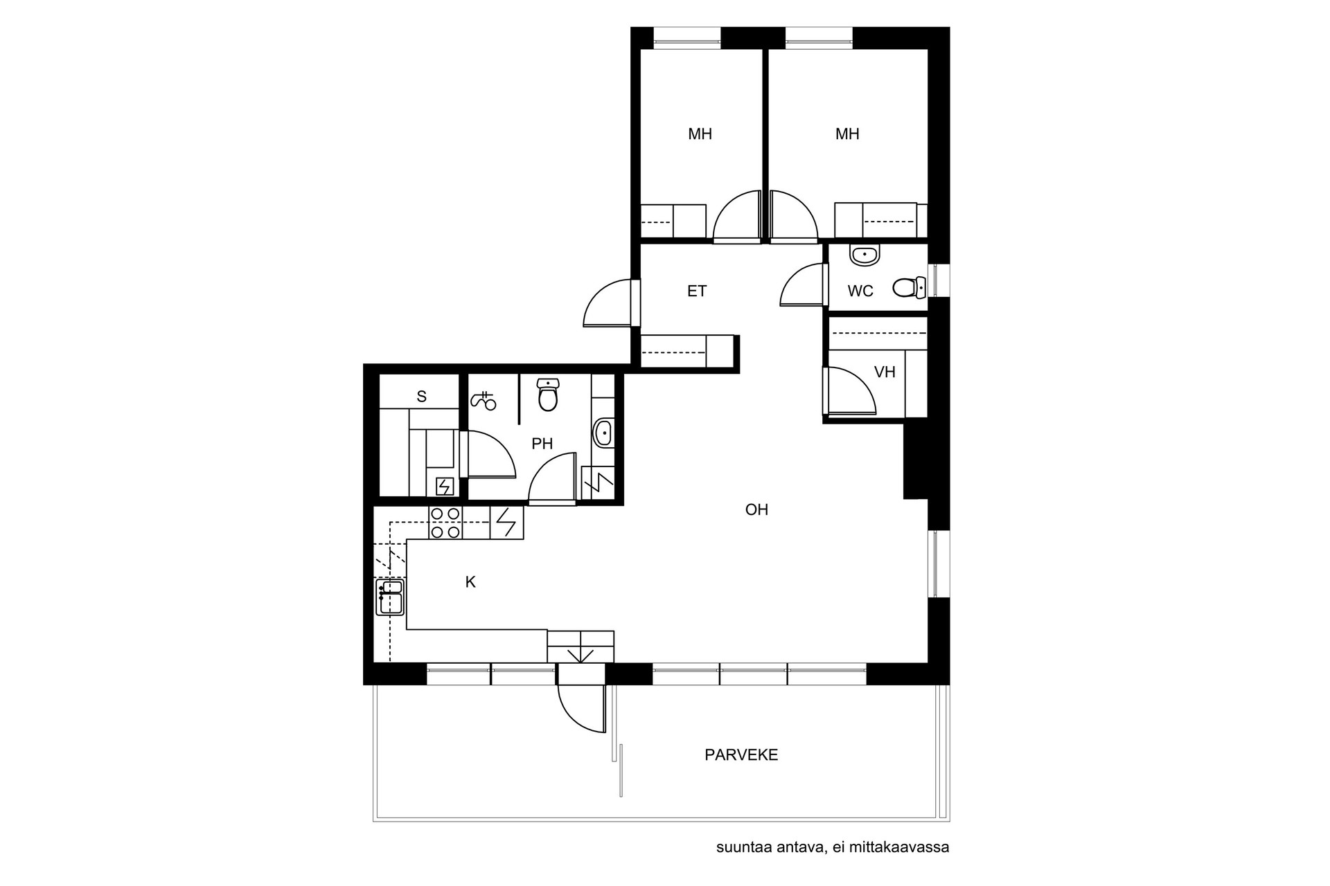 | Huoneistoselitelmä | 3h, k, s, kh, wc, parveke |