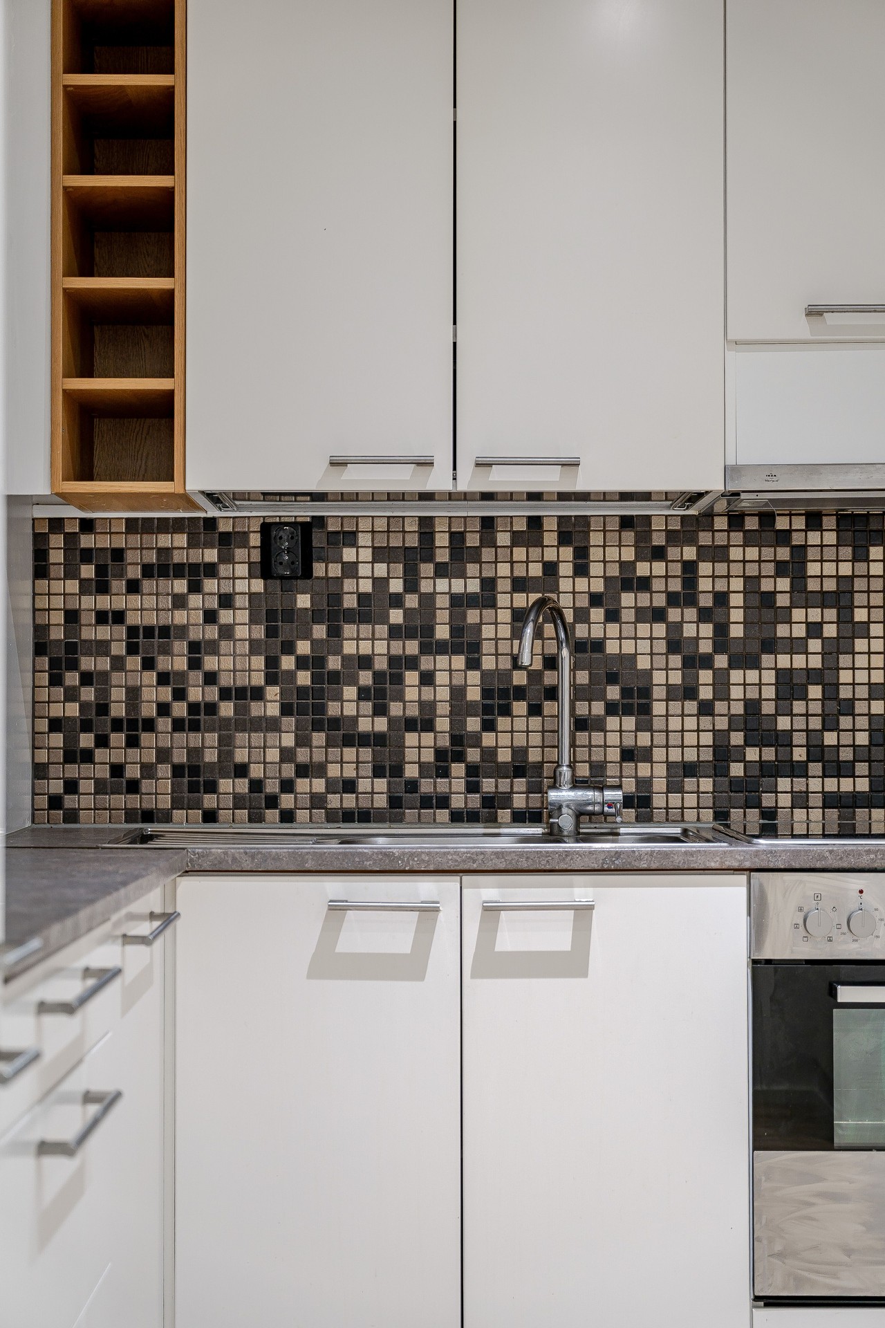 | Keittiön kuvaus | Liesi (Keraaminen liesi), työtasot (laminaatti), seinät (kaakeli ja maali), lattiat (vinyylilankku), jääkaappipakastin, erillisuuni, liesituuletin, liesi, mikroaaltouuni ja astianpesukone |