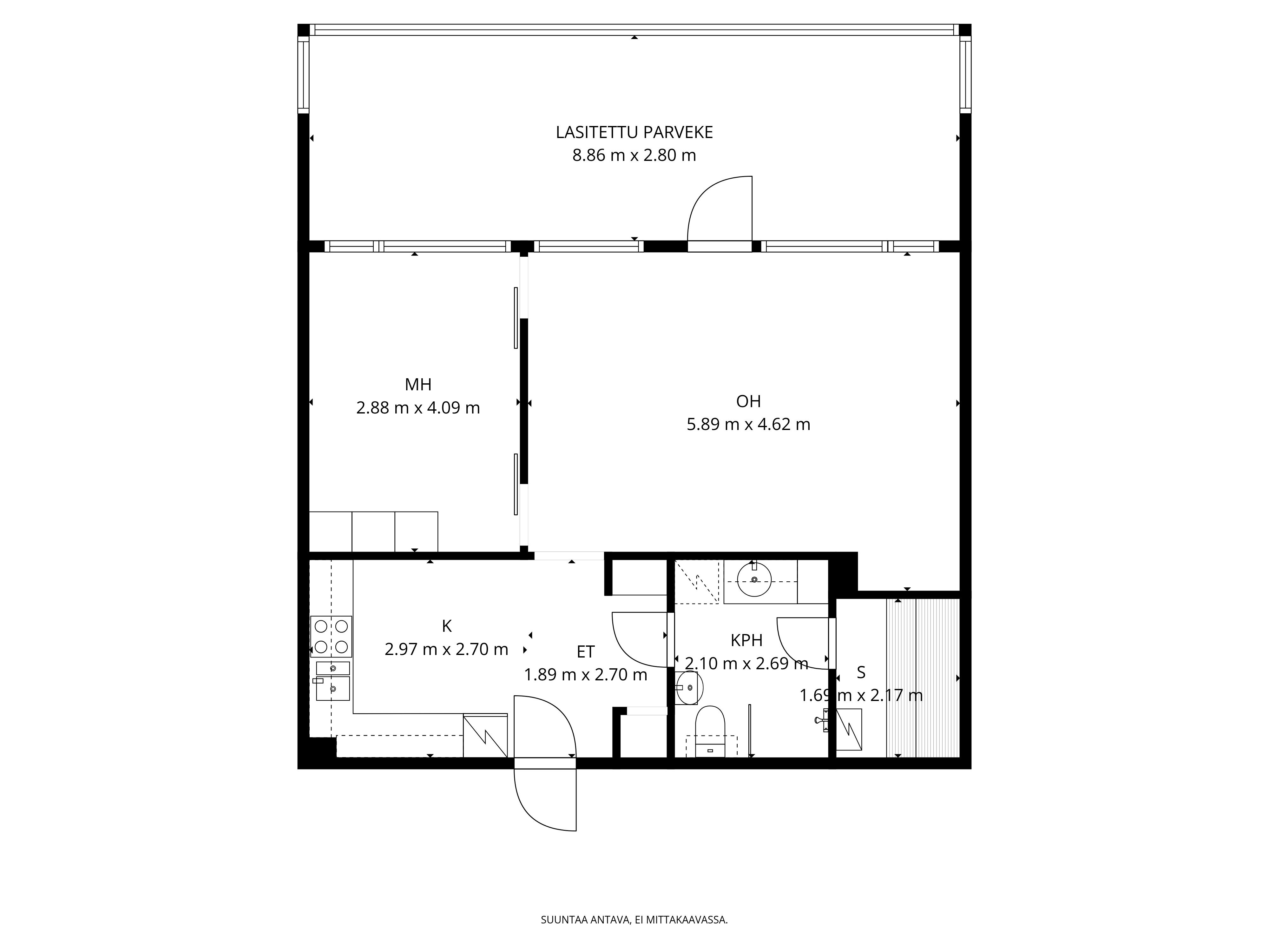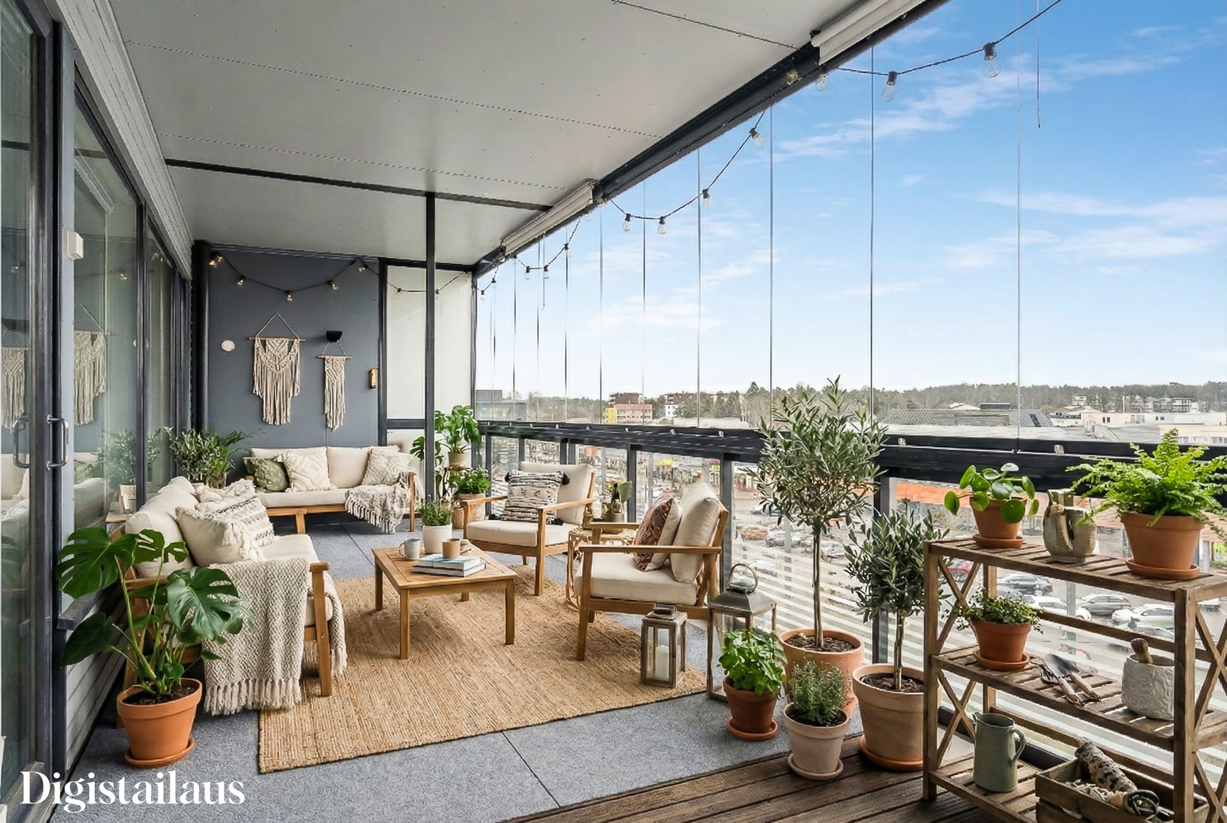 | Parvekkeen kuvaus | Sisäänvedetty ja lasitettu |