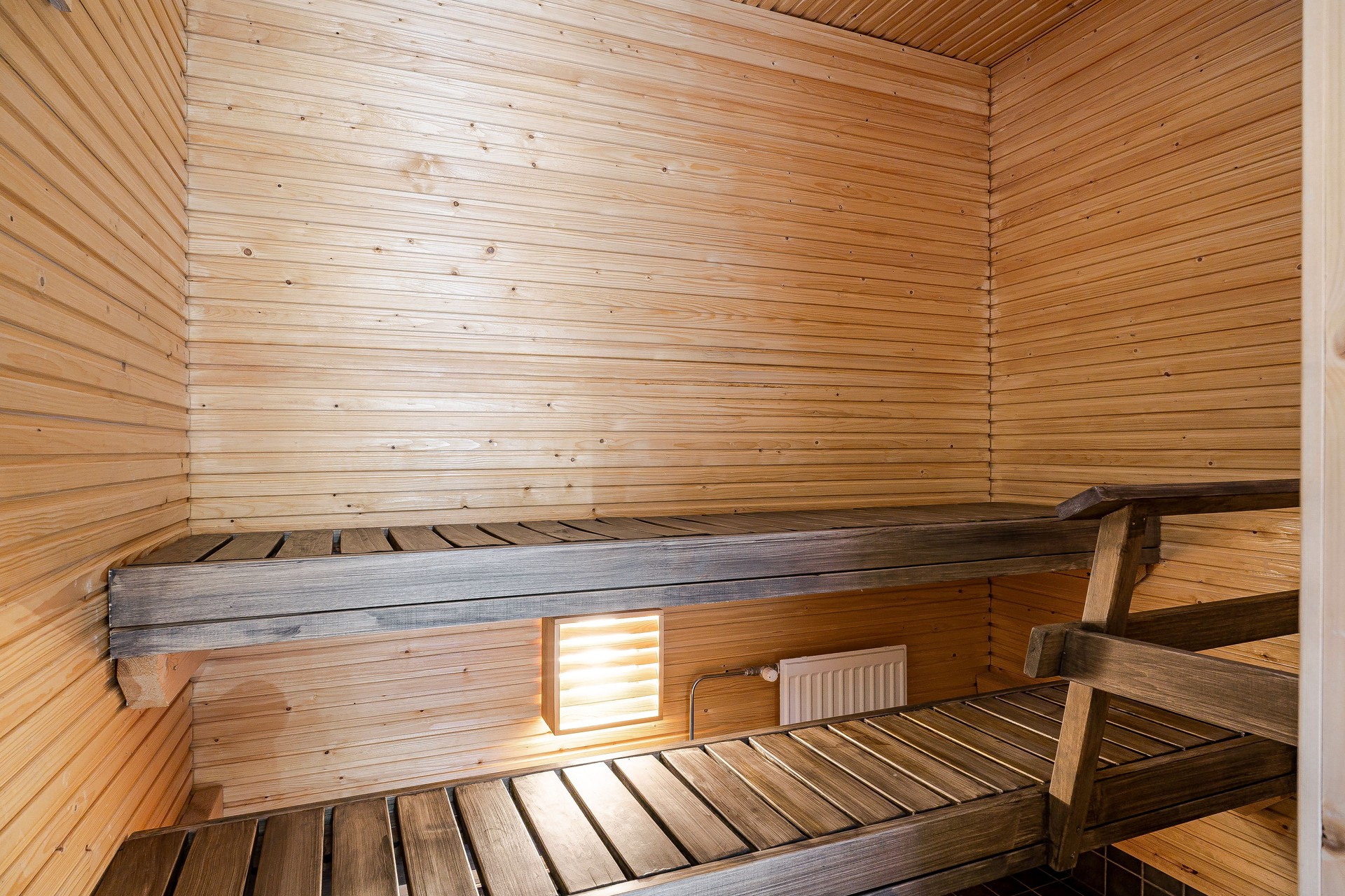 | Saunan kuvaus | Seinät (puu ja paneeli), lattiat (laatta), Sähkökiuas |