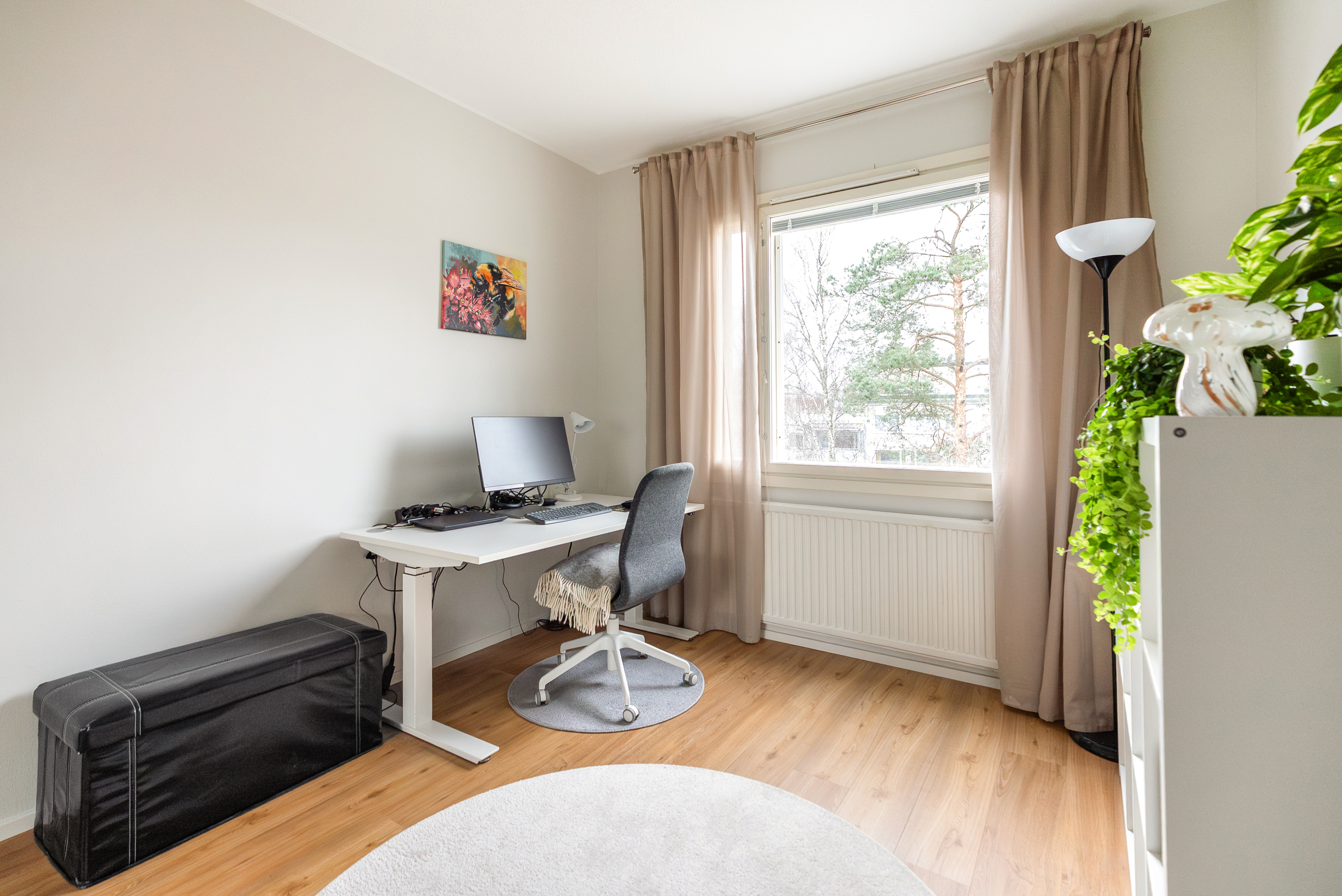 | Makuuhuoneen kuvaus | Lukumäärä: 2, seinät (maali), lattiat (laminaatti ja vinyylikorkki) |