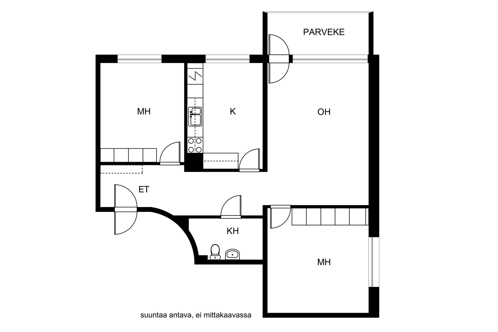 | Huoneistoselitelmä | 3h+k+kph+parveke |