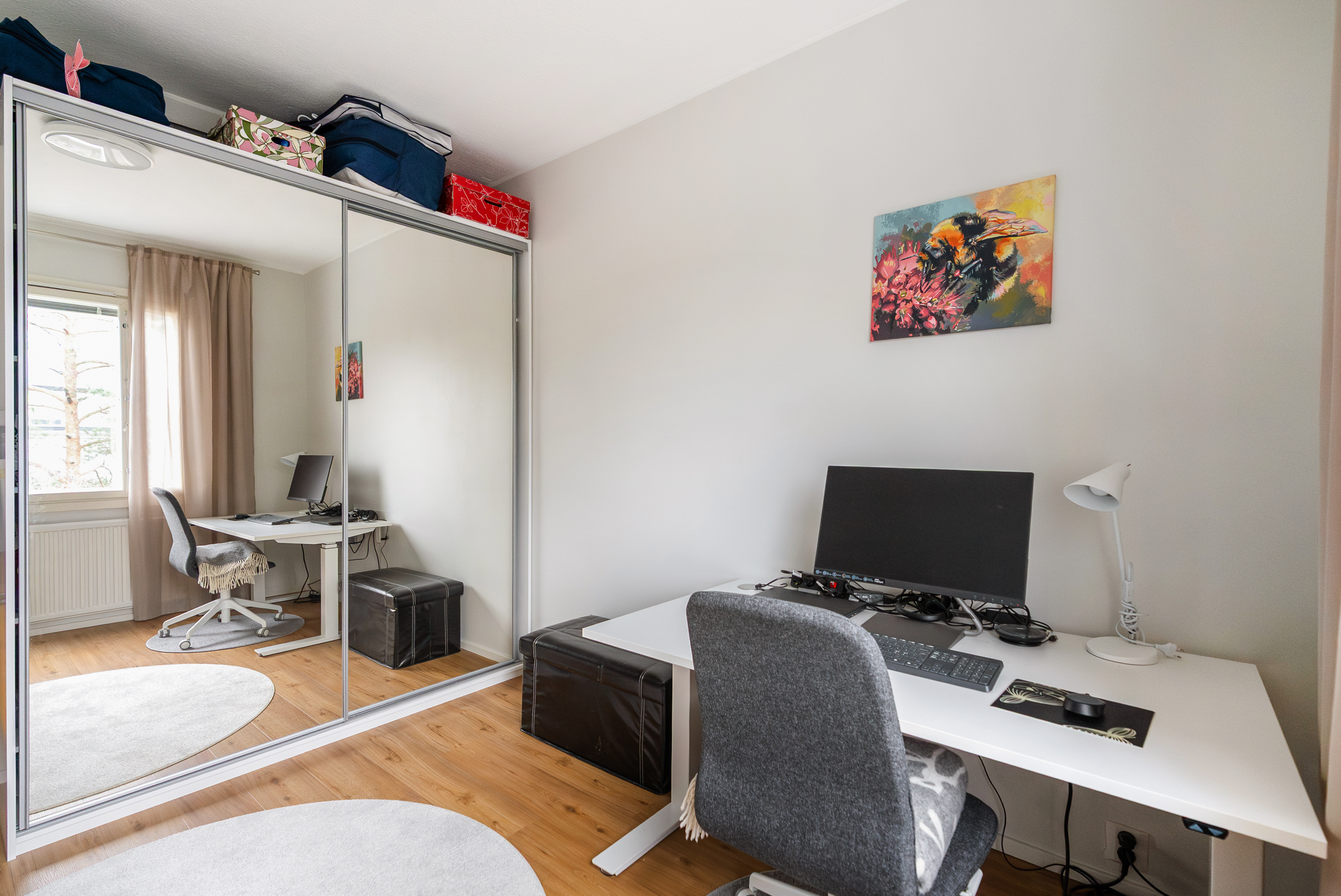 | Tehdyt remontit | 2020-2023: Olohuoneen, eteisen ja makuuhuoneiden seinät, katot, ovet + karmit maalattu. Lattia vaihdettu, listat pääosin uusittu, toinen makuuhuone maalattu. Makuuhuoneiden ja eteisen kaapistot uusittu. 2020-2023: Keittiössä astianpesukone asennettu, seinät ja katto maalattu, kaappien ovenkahvat vaihdettu, lattia vaihdettu, listat uusittu, linjasaneerauksen yhteydessä putket ja hana. 2022: KPH täysin remontoitu linjasaneerauksessa, valittu laadukkaammat laatat ja isompi allaskaappi. 2023: Viilentävän ilmalämpöpumpun asennus 2024: Uusittu liesi (induktio) ja jääkaappipakastin |