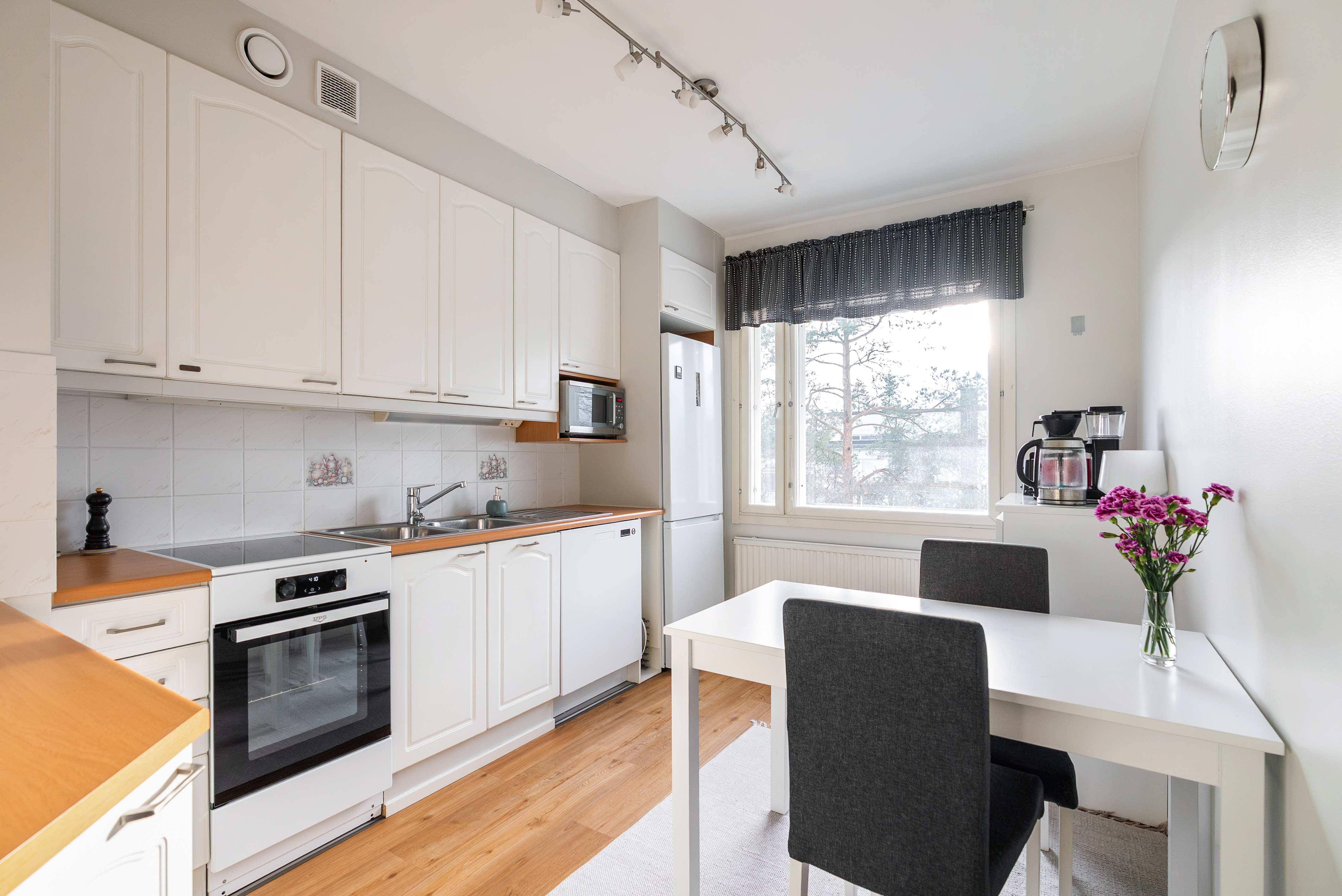 | Keittiön kuvaus | Liesi (Induktioliesi), lattiat (vinyylikorkki), jääkaappipakastin, liesi, liesituuletin ja astianpesukone |