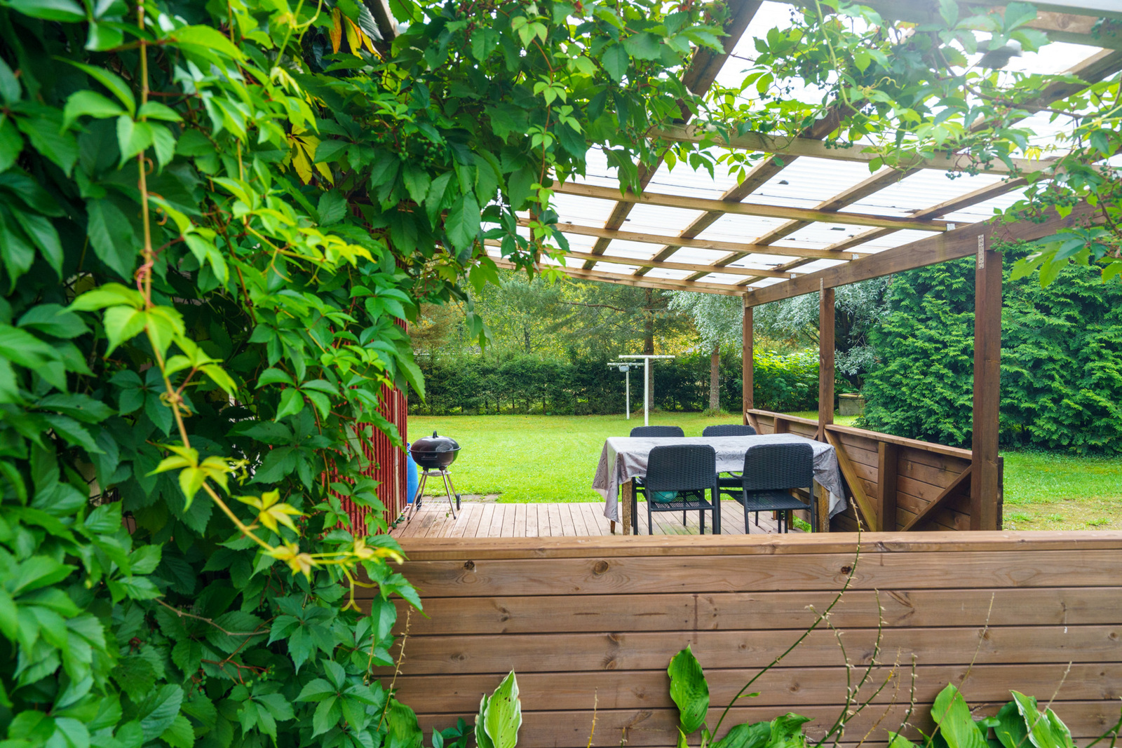 Piharakennuksessa sijaitsee pihasauna, jossa voit nauttia löylyistä niin kirpeänä pakkaspäivänä kuin lämpimänä kesäiltana. Piharakennuksen yhteydessä on suuri katettu terassi jossa voit viettää vaikka lämmintä syysiltaa.