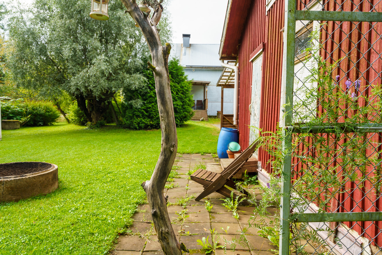 Suuri piha-alue, jossa on kauniita vanhoja puita, tarjoaa runsaasti tilaa lasten leikeille ja puutarhanhoidolle.